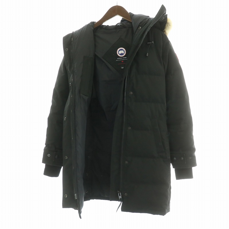 • カナダグース CANADA GOOSE シェルバーン パーカ フュージョンフィット ヘリテージ ダウンジャケット ロング ワッペン 襟コヨーテファー XS 黒 ブラック 3802L /MW ■GY18 レディース
