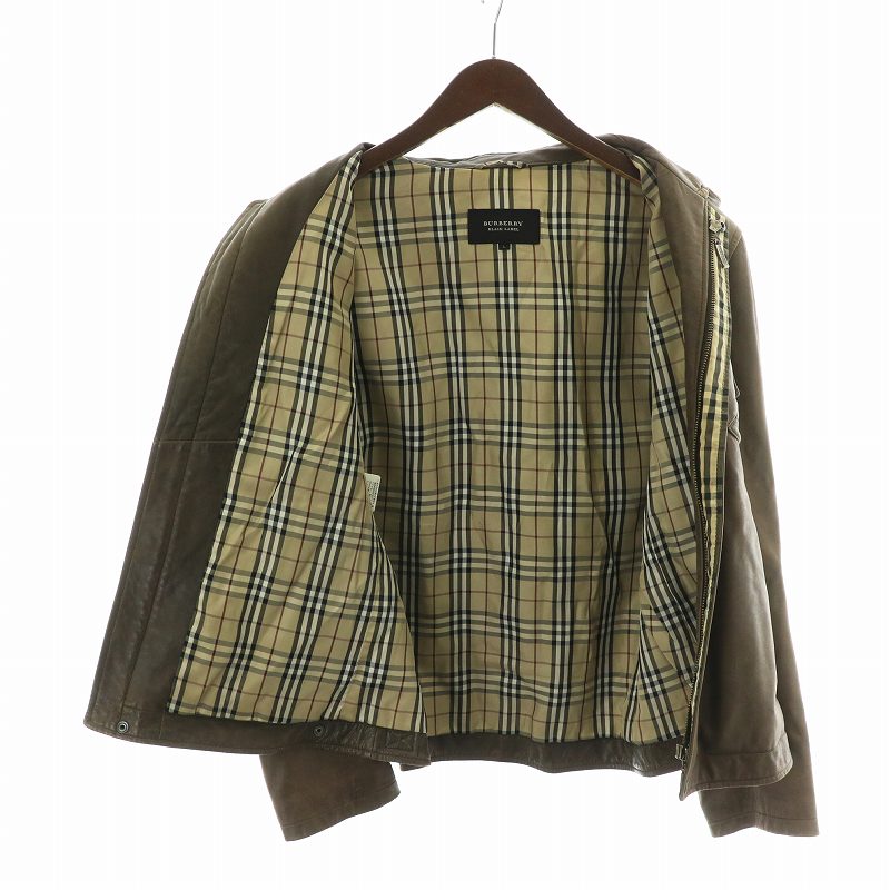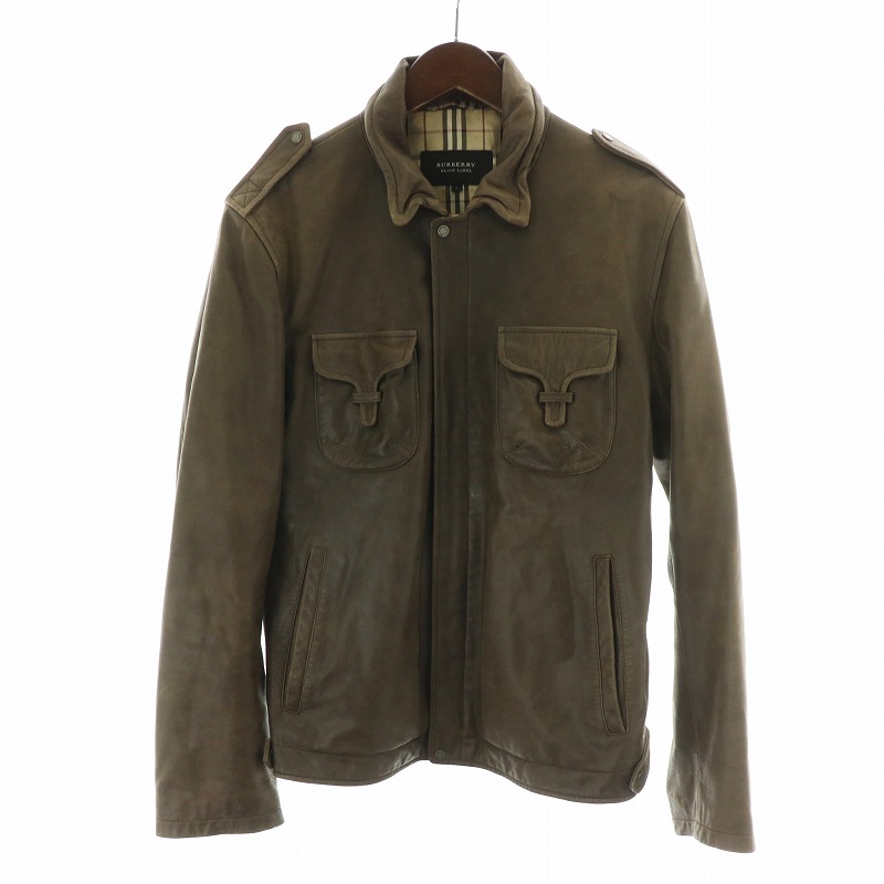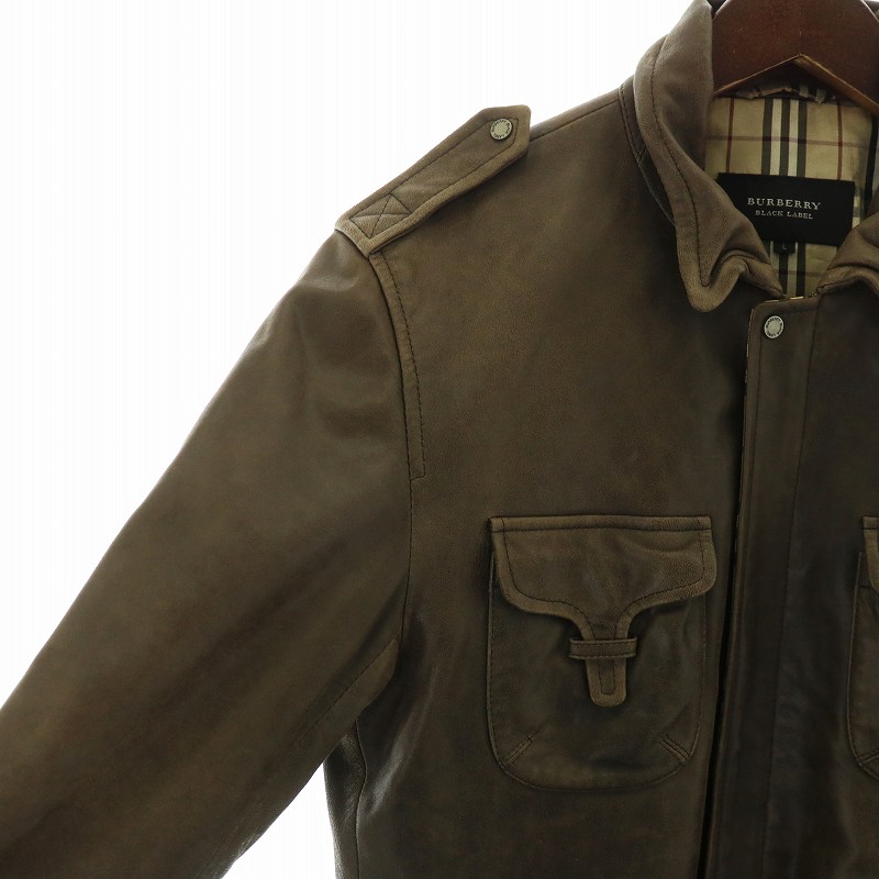 バーバリーブラックレーベル BURBERRY BLACK LABEL ミリタリー レザー ジャケット 革ジャン 裏地ノバチェック L 茶 ブラウン ■GY18 /MQ メンズ