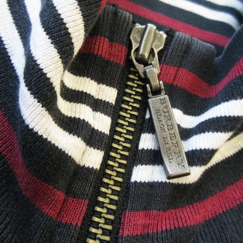バーバリーブラックレーベル BURBERRY BLACK LABEL ジャケット スウェットブルゾン スタンドカラー ジップアップ ボーダー ロゴ刺繍 2 M 黒 ブラック /AO11 ■GY18 メンズ