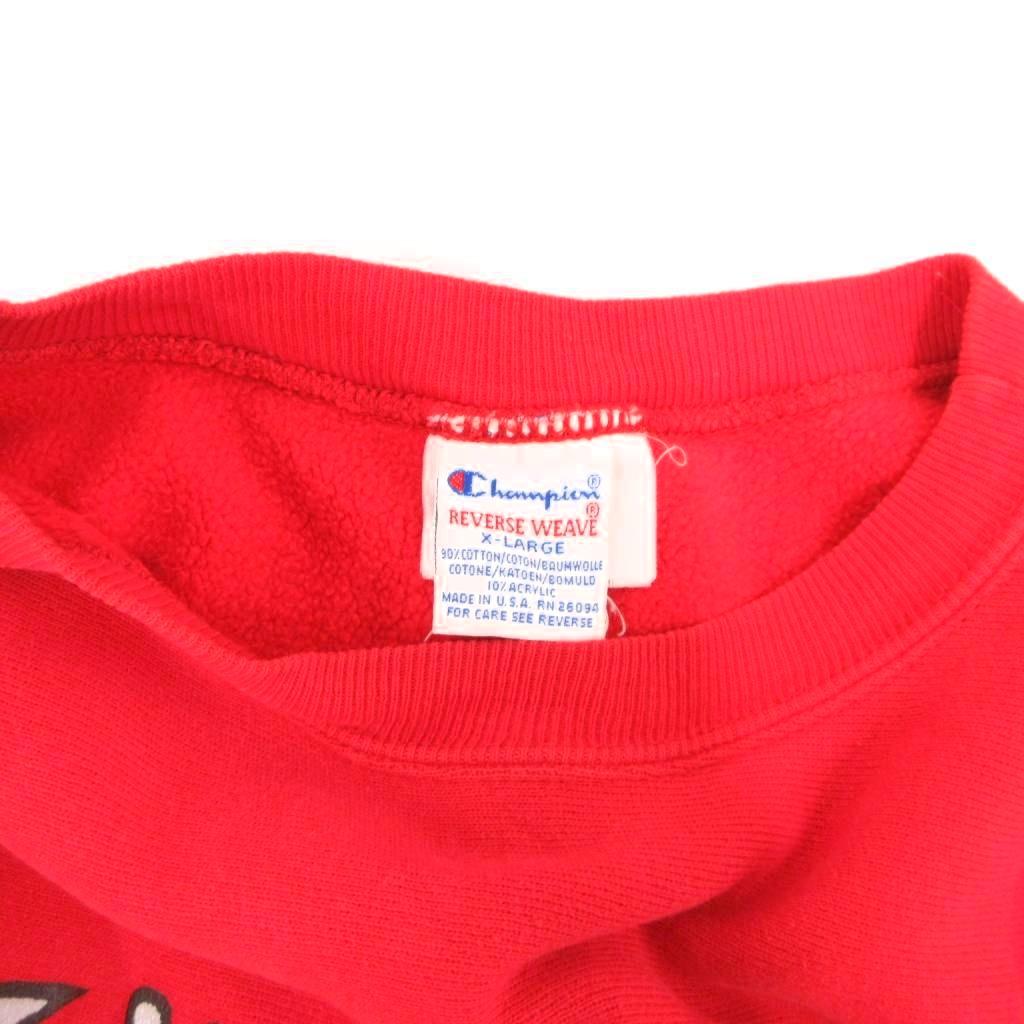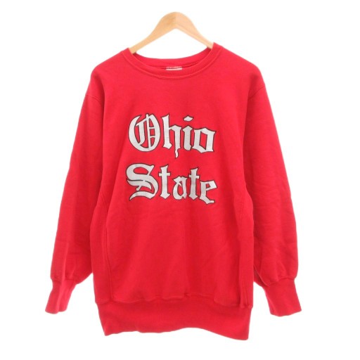 • チャンピオン CHAMPION REVERSE WEAVE 90s USA製 ヴィンテージ Ohio State オハイオステート大学 ガレッジロゴ プリント リバースウィーブ スウェット トレーナー クルーネック XL 赤 レッド /JS ■GY18 メンズ
