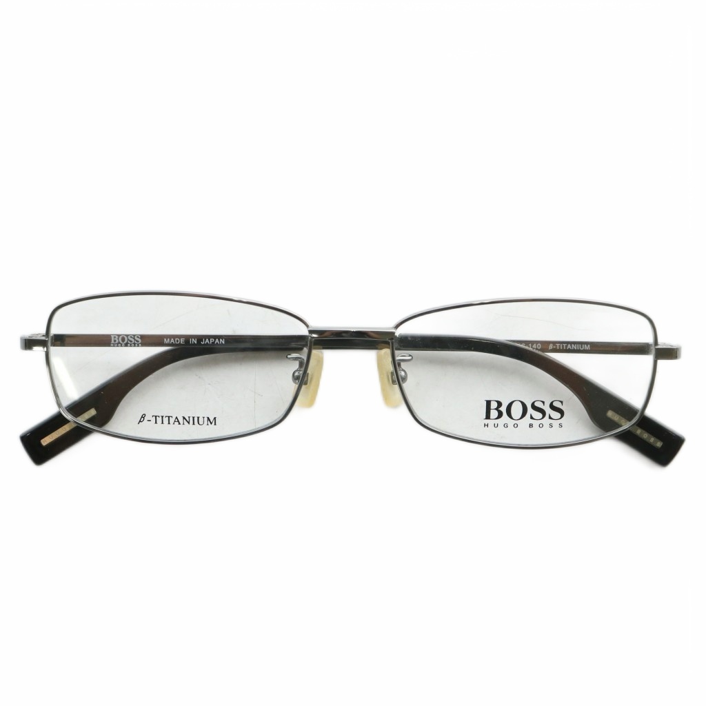 • ヒューゴボス HUGO BOSS 眼鏡 メガネ 度なし チタンフレーム スクエア ロゴ 54□16-140 シルバー色 BOSS-6557 /XZ ■GY11 メンズ
