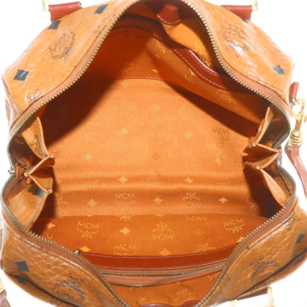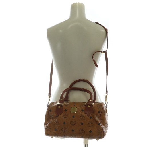 エムシーエム MCM ミニボストンバッグ ハンド ショルダー 2WAY レザー ヴィセトス柄 総柄 ロゴ ゴールド金具 茶色 ブラウン /XZ ■GY18 レディース