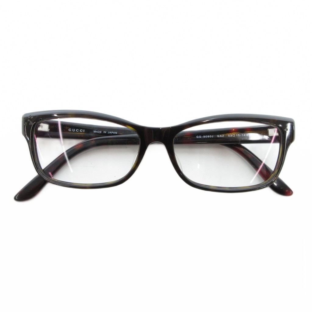 グッチ GUCCI GG-9090J 眼鏡 スクエア 伊達メガネ 度無し インターロッキング シェリーライン べっ甲調 53口15-140 黒 ブラック /JS メンズ レディース