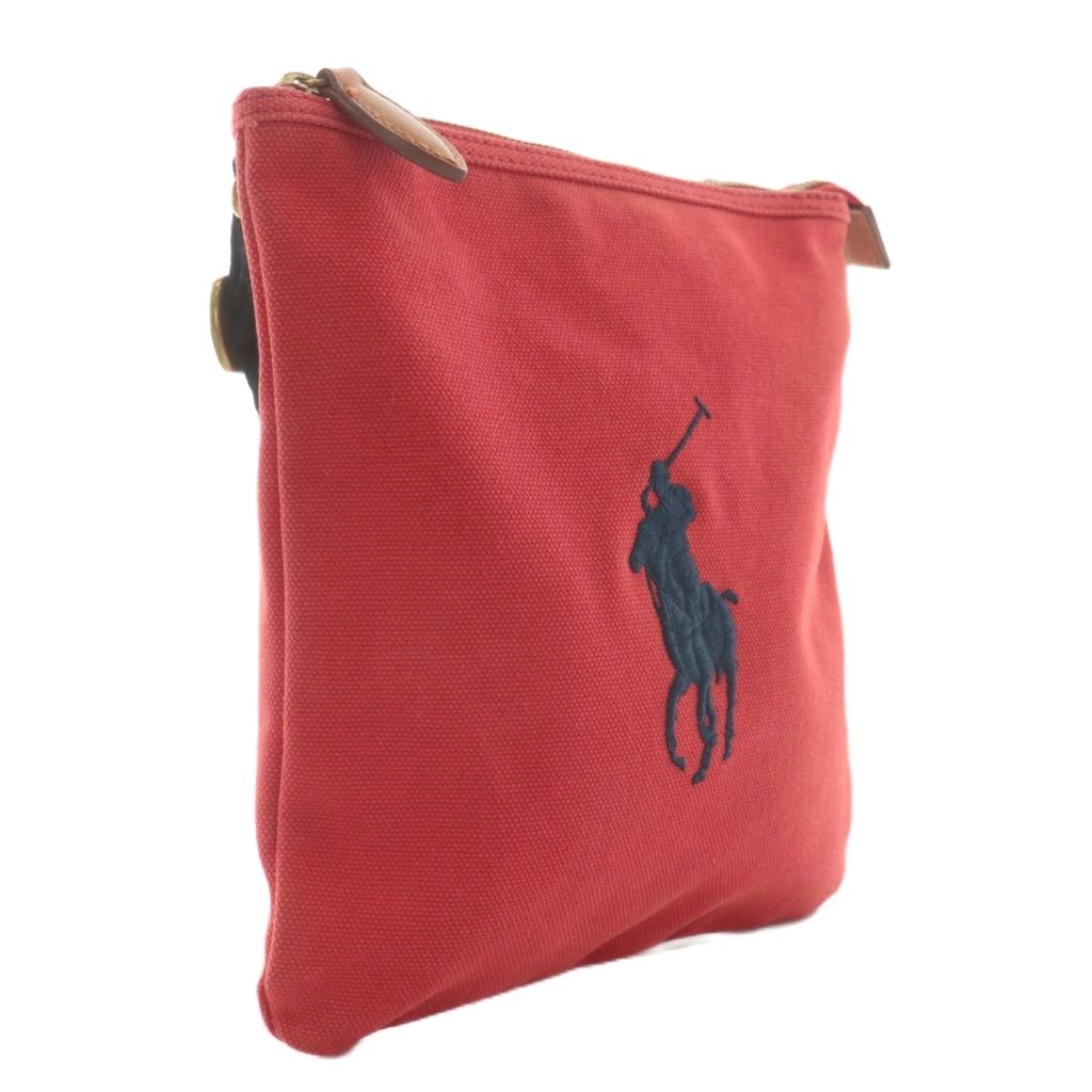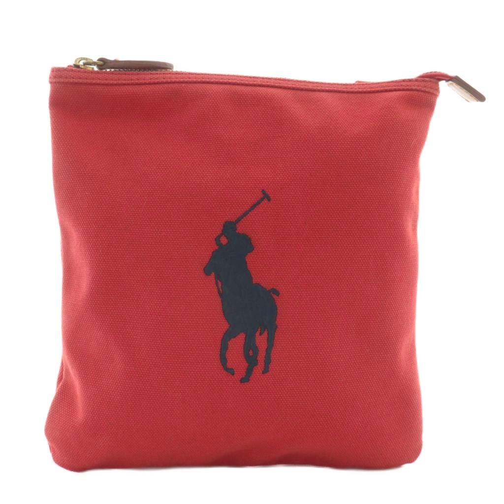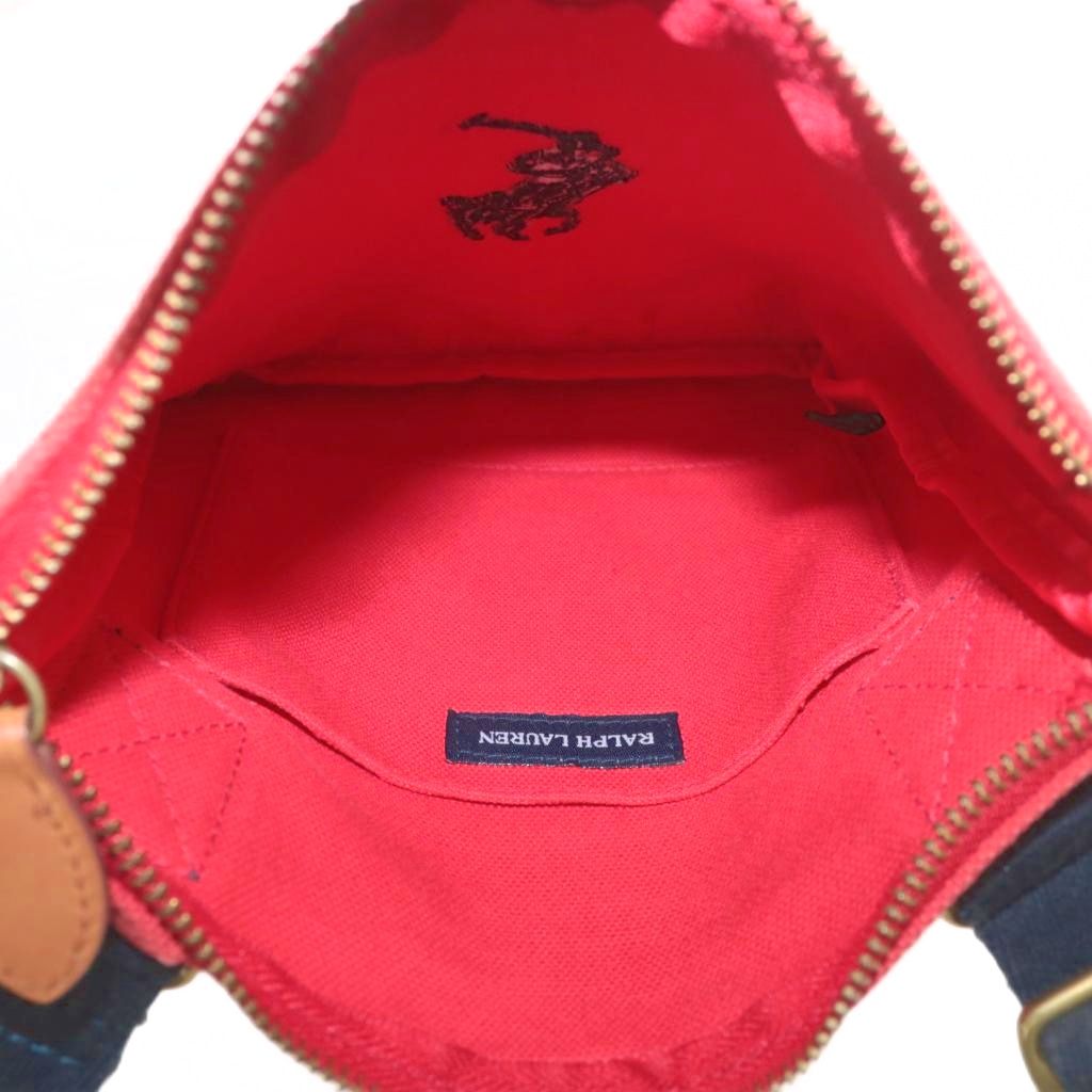 ラルフローレン RALPH LAUREN ショルダーバッグ ポシェット キャンバス ポニー ロゴ 刺繍 赤 レッド 紺 ネイビー /XZ ■GY11 レディース