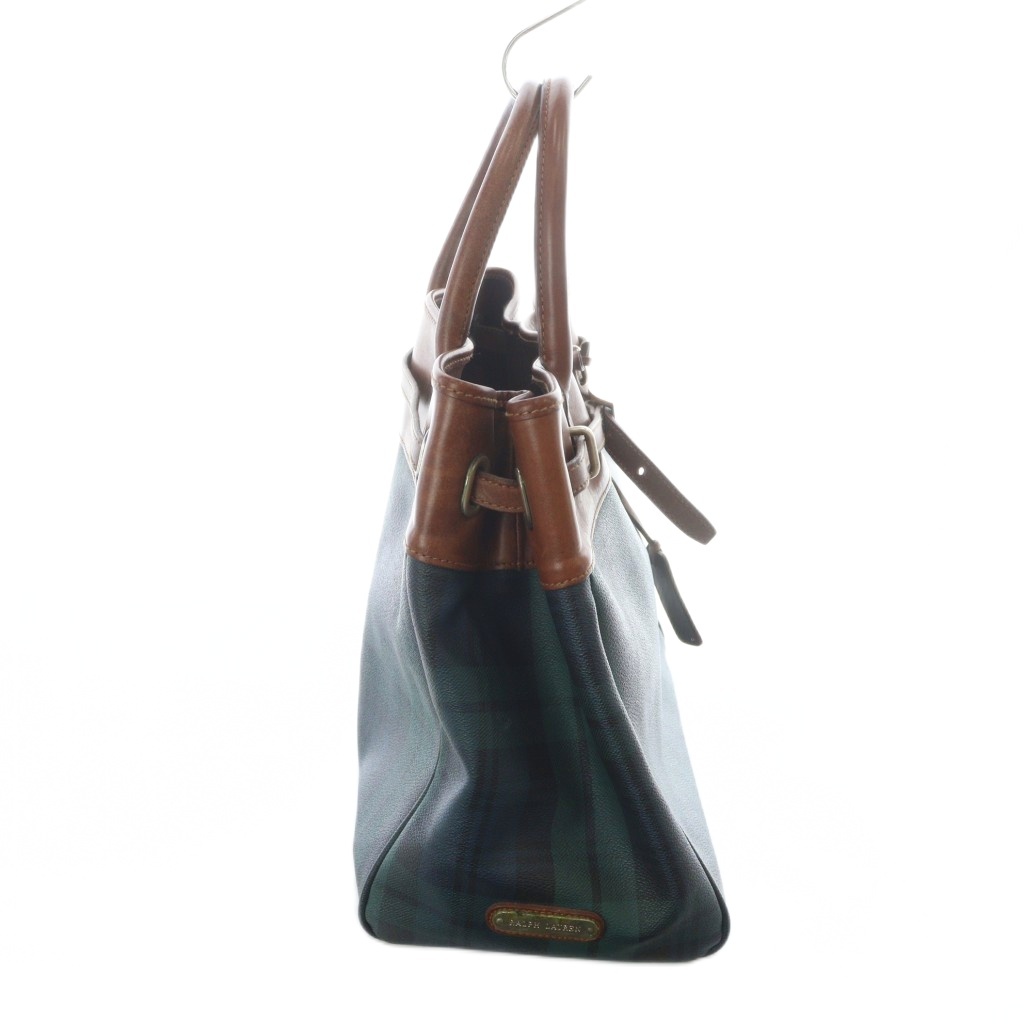 ラルフローレン RALPH LAUREN ハンドバッグ トート PVC レザー チェック柄 ブラックウォッチ ロゴ 緑 グリーン ■GY18 /MQ レディース
