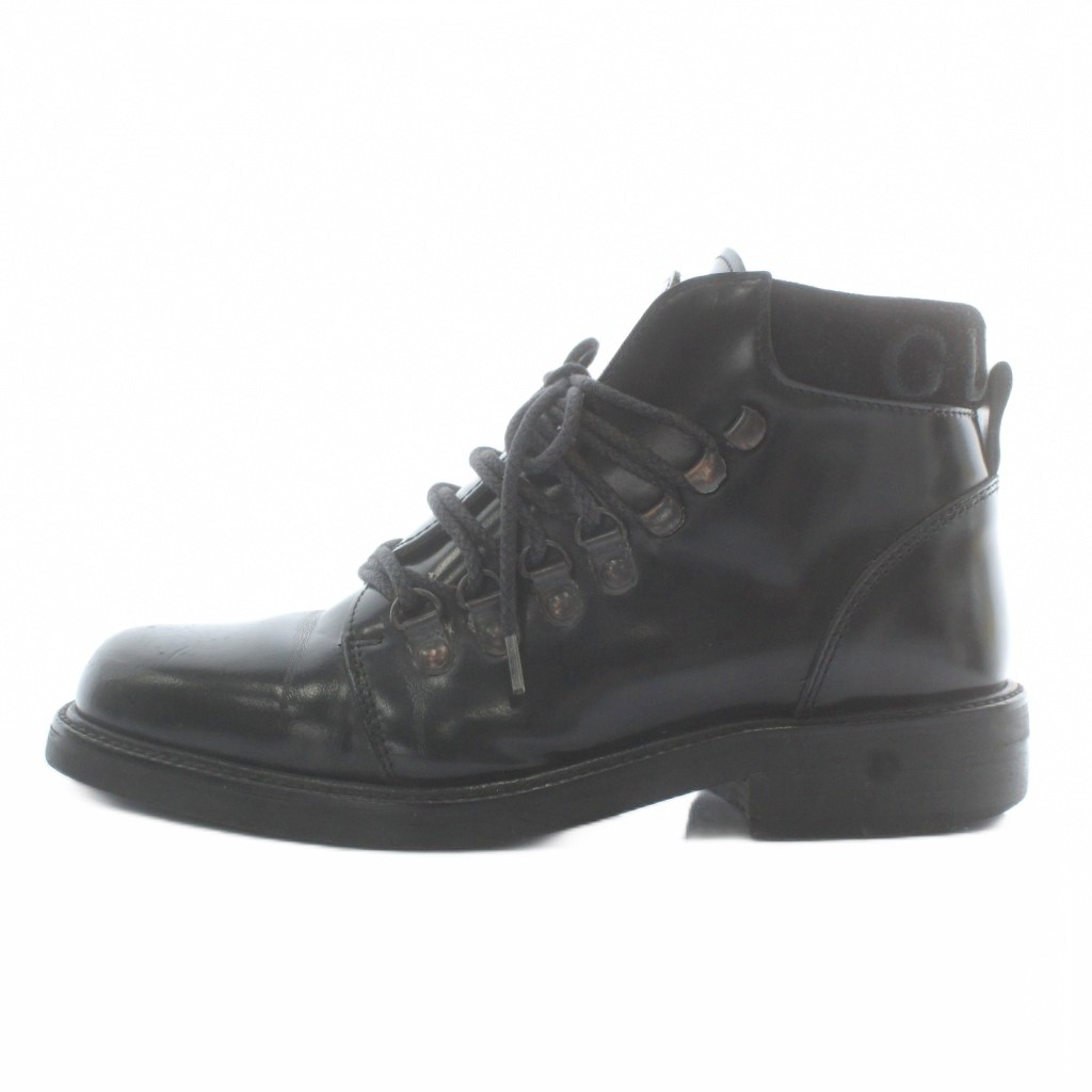 • グッチ GUCCI ショートブーツ レザー スエード スクエアトゥ レースアップ ロゴ 刺繍 35.5 22.5㎝ 黒 ブラック /XZ ■GY18 レディース