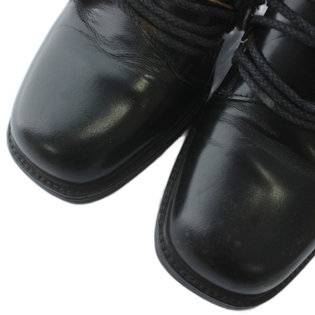 グッチ GUCCI ショートブーツ レザー スエード スクエアトゥ レースアップ ロゴ 刺繍 35.5 22.5㎝ 黒 ブラック /XZ ■GY18 レディース