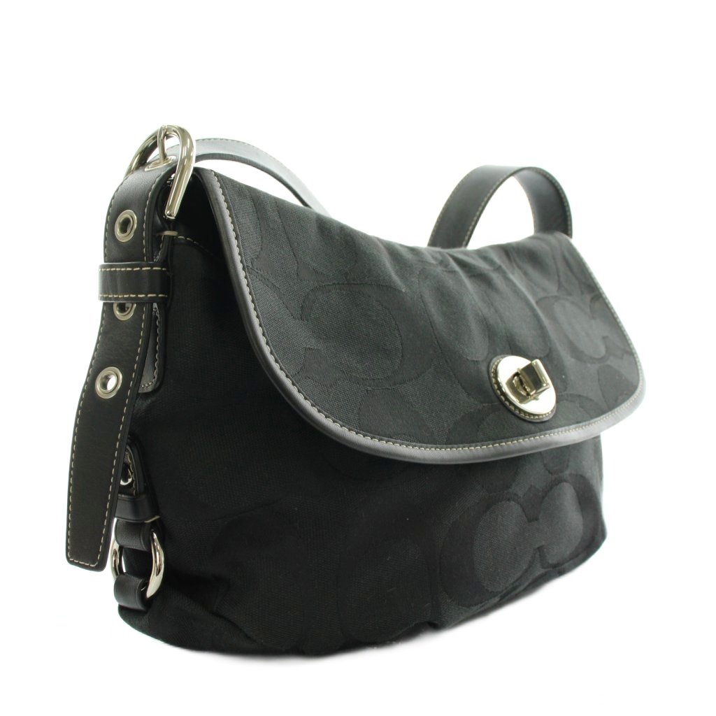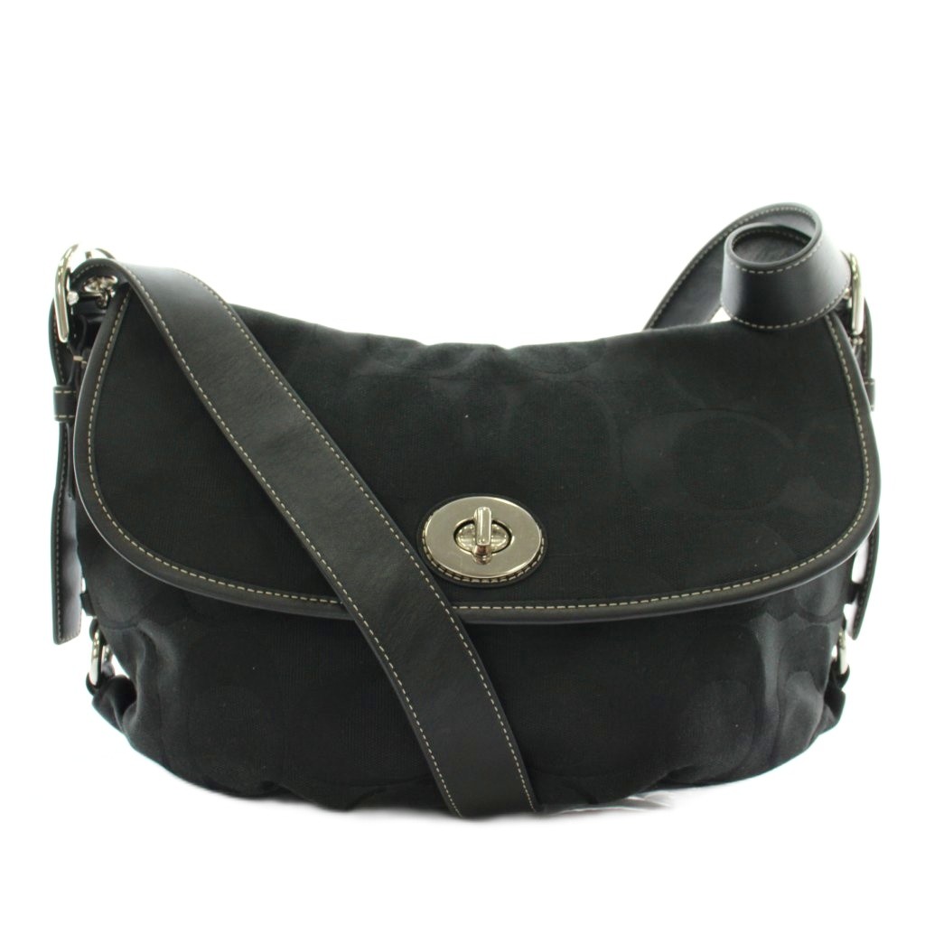 コーチ COACH ショルダーバッグ キャンバス レザー シグネチャー ターンロック 黒 ブラック F15171 /XZ ■GY18 レディース