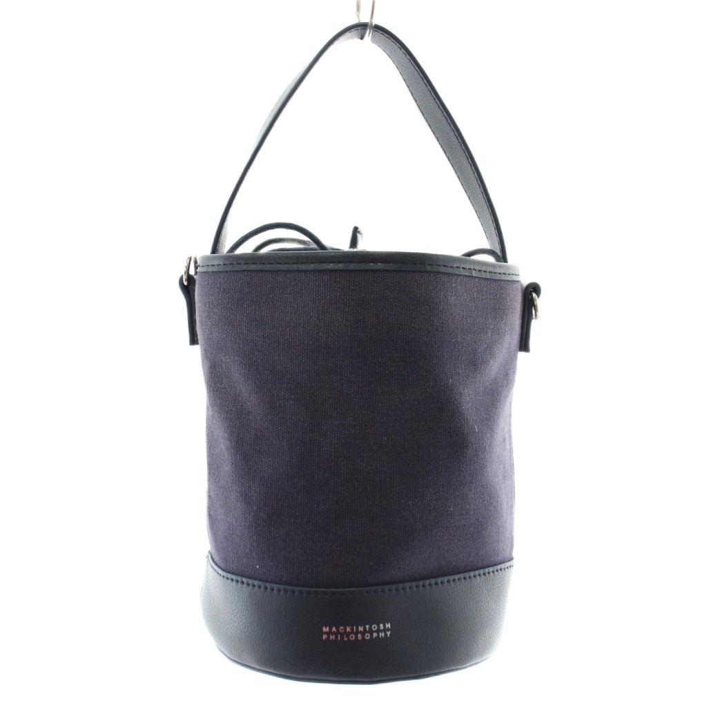 マッキントッシュフィロソフィー MACKINTOSH PHILOSOPHY ハンドバッグ ショルダー 2WAY キャンバス レザー 巾着 総柄 ロゴ 紺 ネイビー /XZ ■GY99 レディース