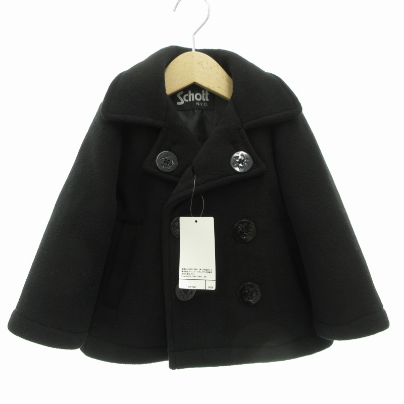 • 未使用品 ショット SCHOTT タグ付き Pコート ショート 総裏地 90 黒 ブラック /GV キッズ
