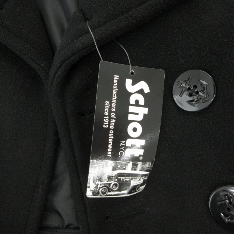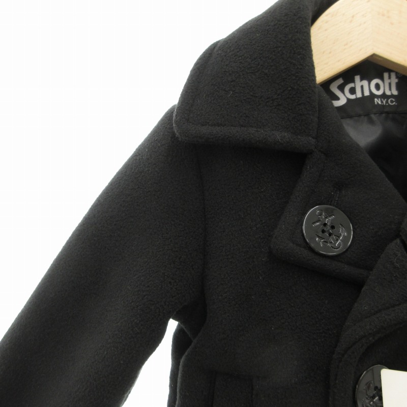 未使用品 ショット SCHOTT タグ付き Pコート ショート 総裏地 90 黒 ブラック /GV キッズ