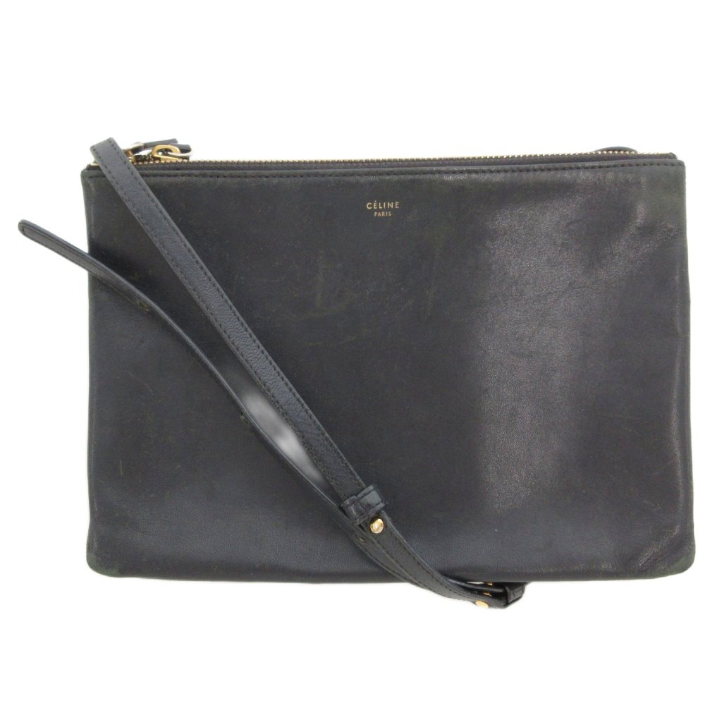 • セリーヌ CELINE トリオ ショルダーバッグ クロスボディ 本革 レザー ブラック /UO ☆AA★ レディース