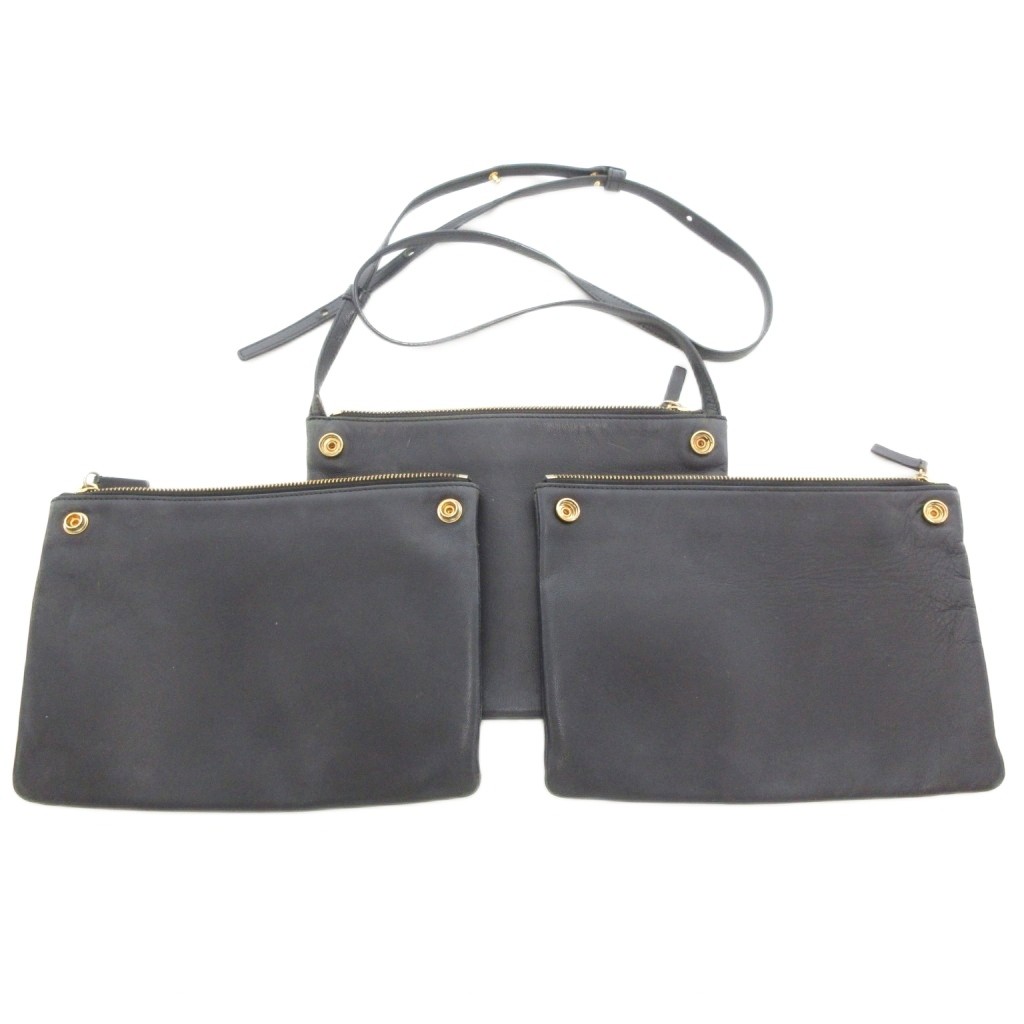 セリーヌ CELINE トリオ ショルダーバッグ クロスボディ 本革 レザー ブラック /UO ☆AA★ レディース