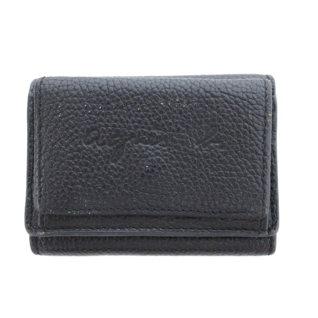 アニエスベー agnes b. 三つ折り財布 レザー エンボスロゴ ブラック /UO メンズ レディース