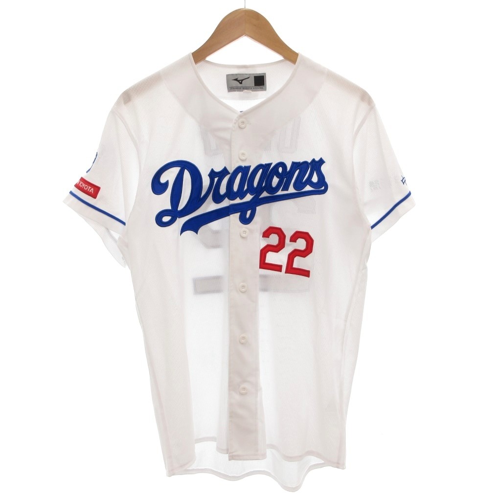 • ミズノ MIZUNO 中日ドラゴンズ 背番号22 大野雄大 レプリカ ユニフォーム ホーム ゲームシャツ M 白 ホワイト 青 ブルー /GV メンズ