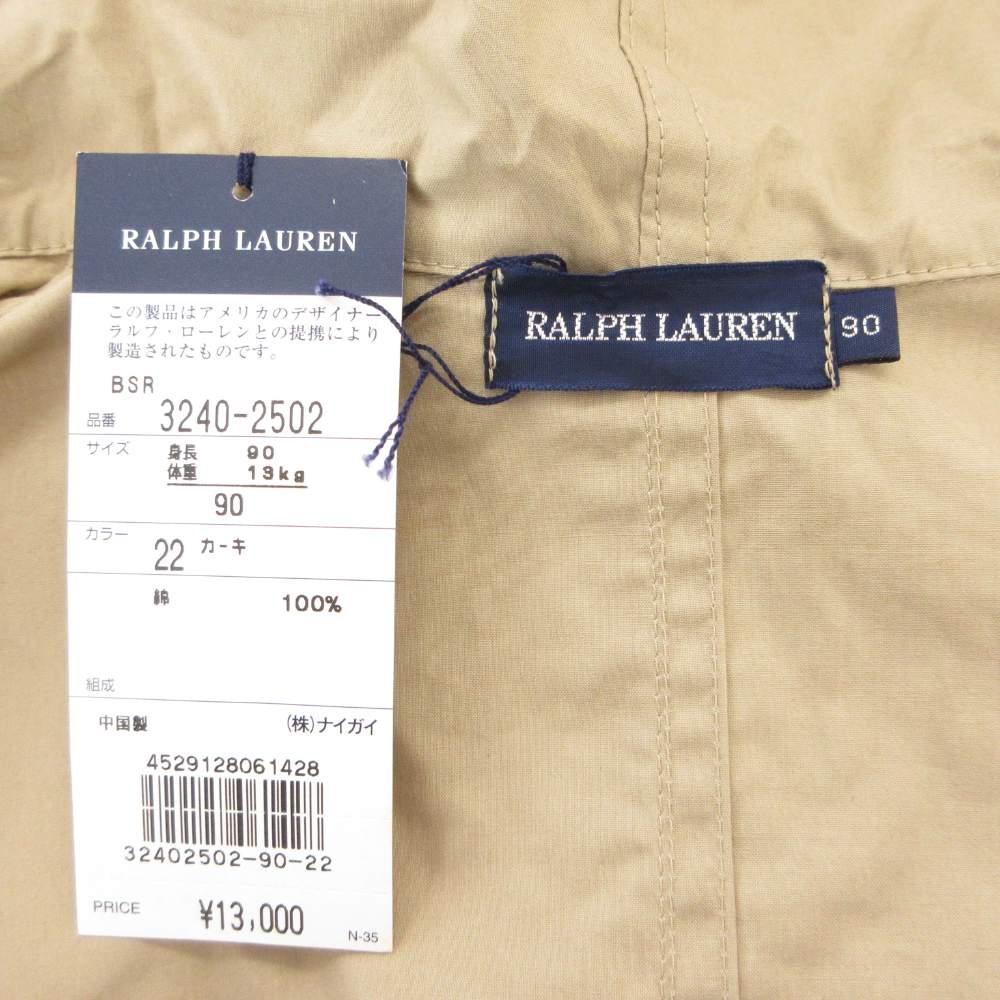未使用品 ラルフローレン RALPH LAUREN タグ付き マウンテンパーカー 90 ポニー刺繍 ロゴ フード カーキ ベージュ /AE キッズ