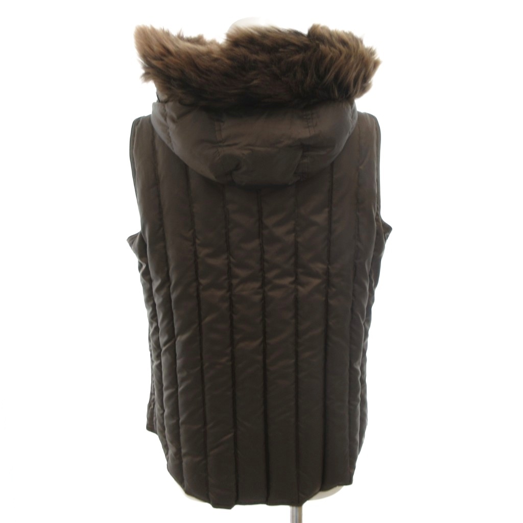 ラルフローレン RALPH LAUREN ダウンベスト ジャケット ジップアップ フード ラムファー M 茶 ブラウン /FF レディース