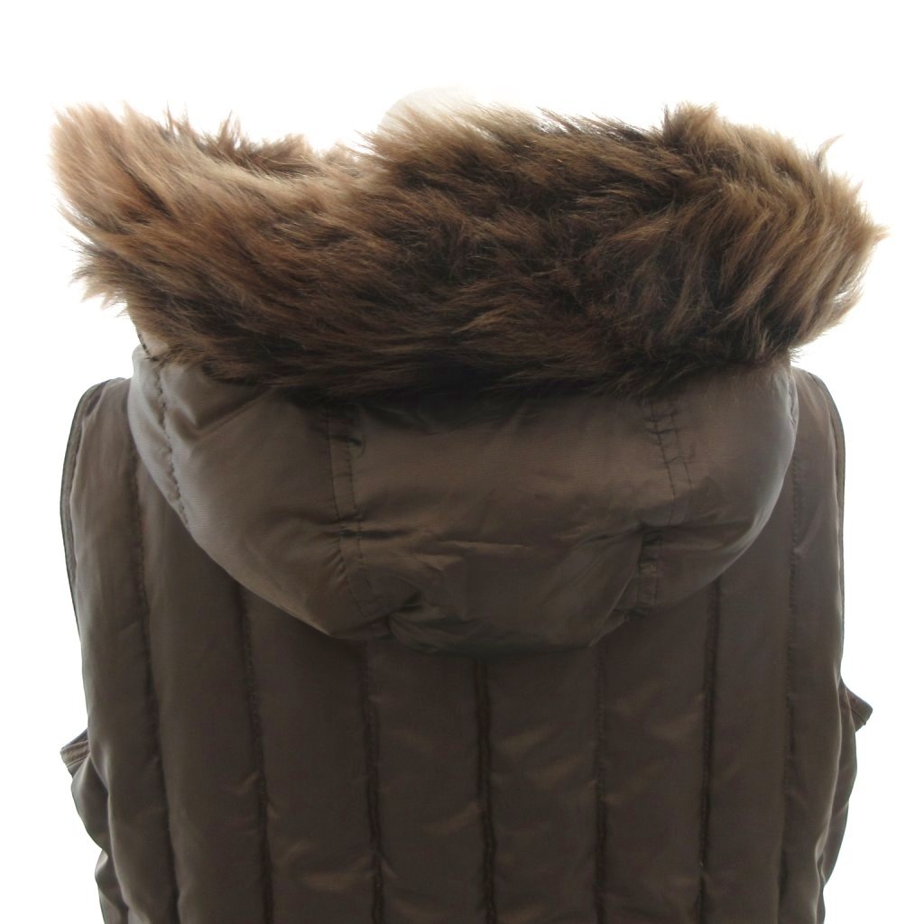 • ラルフローレン RALPH LAUREN ダウンベスト ジャケット ジップアップ フード ラムファー M 茶 ブラウン /FF レディース