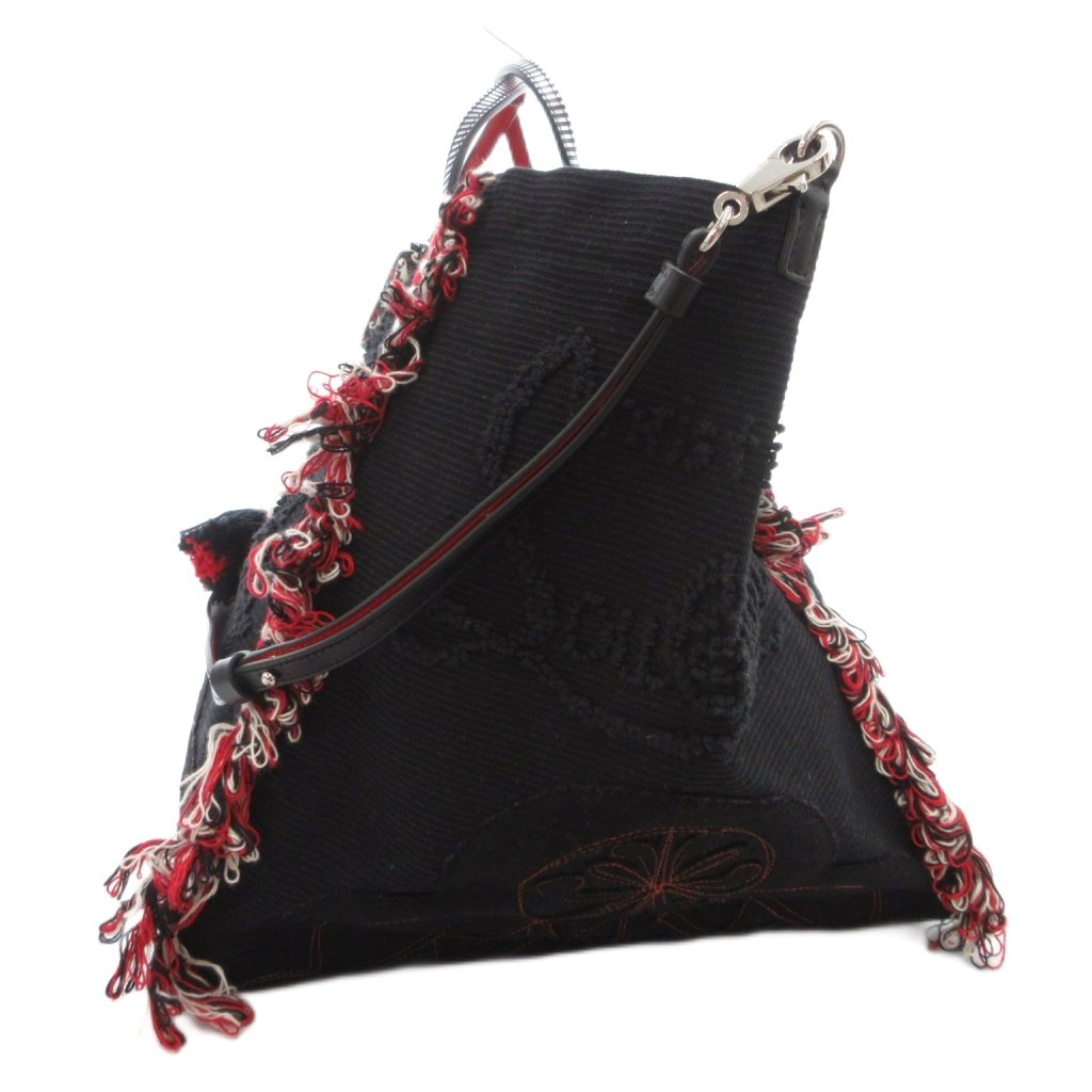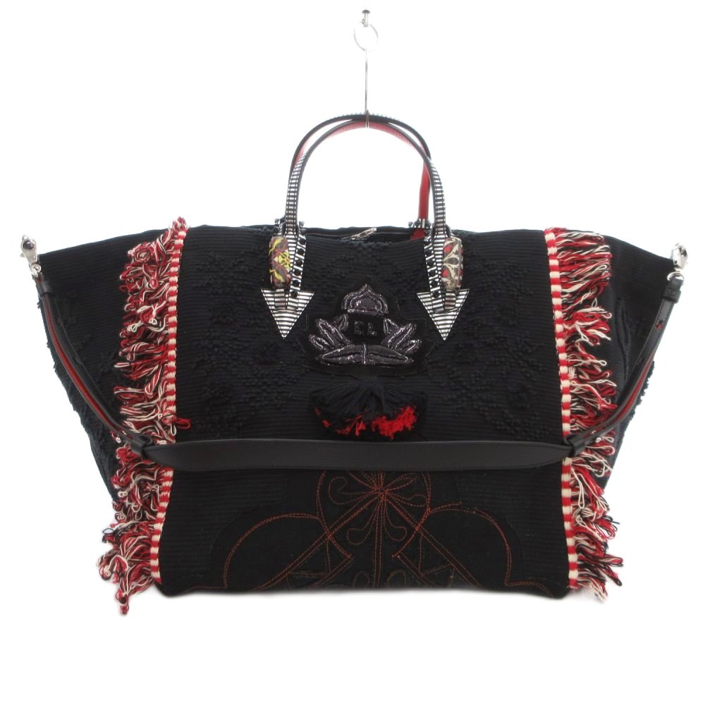 • クリスチャンルブタン Christian louboutin ポルトガバ PORTUGABA トート ハンドバッグ ショルダー 2WAY 斜め掛け キャンバス スタッズ フリンジ 黒 ブラック 赤 レッド /GV ☆AA★ レディース