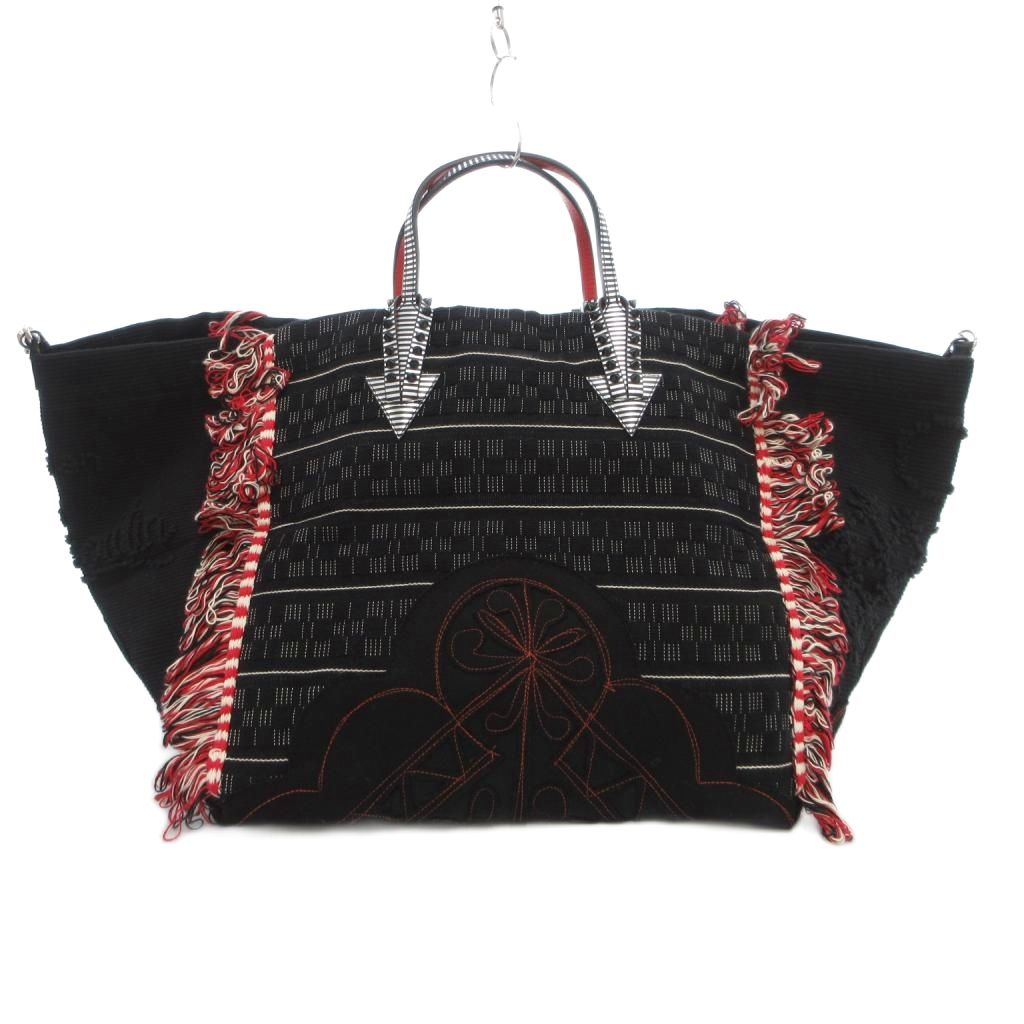クリスチャンルブタン Christian louboutin ポルトガバ PORTUGABA トート ハンドバッグ ショルダー 2WAY 斜め掛け キャンバス スタッズ フリンジ 黒 ブラック 赤 レッド /GV ☆AA★ レディース