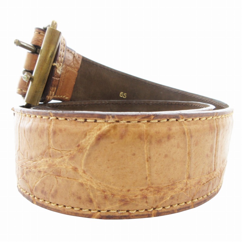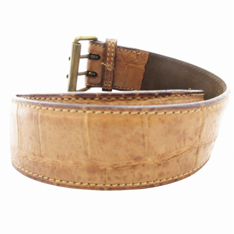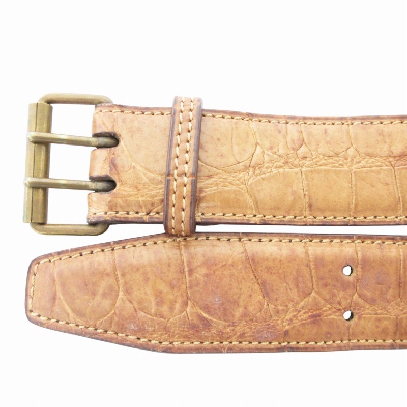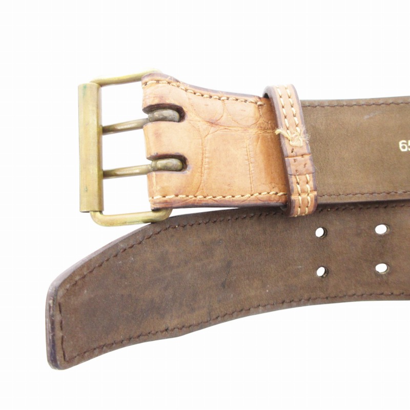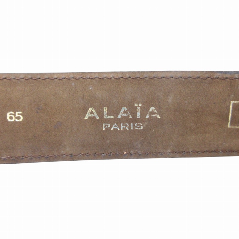 アライア ALAIA ヴィンテージ vintage レザーベルト クロコ型押し ダブルパンチング 65 茶 ブラウン /GV レディース