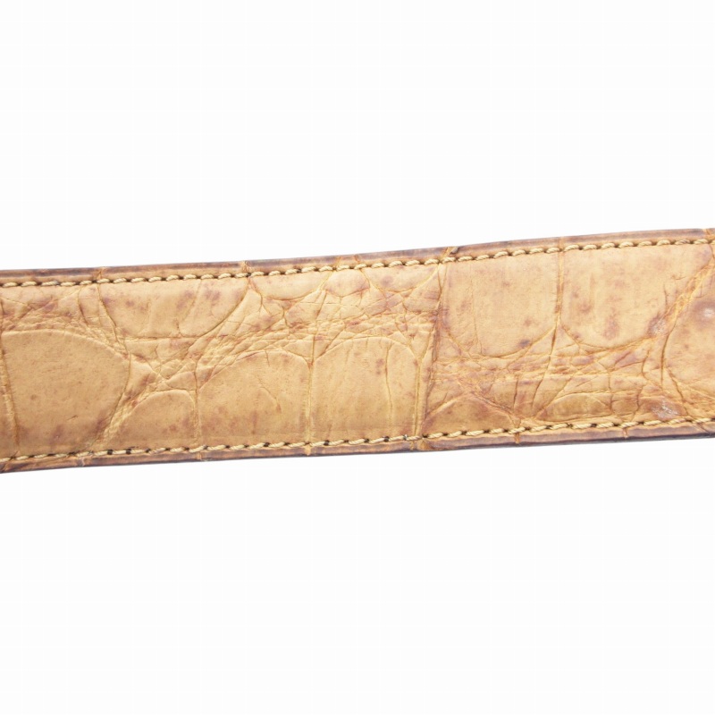 • アライア ALAIA ヴィンテージ vintage レザーベルト クロコ型押し ダブルパンチング 65 茶 ブラウン /GV レディース