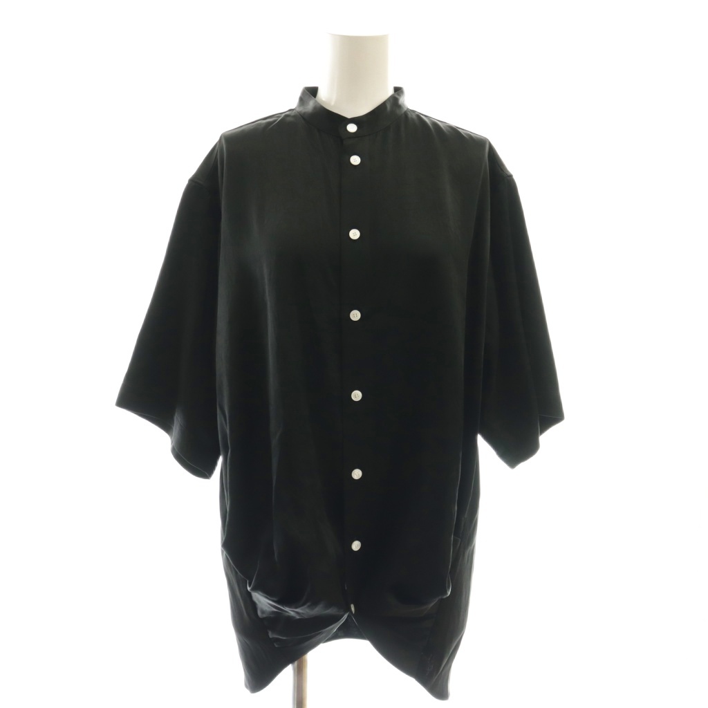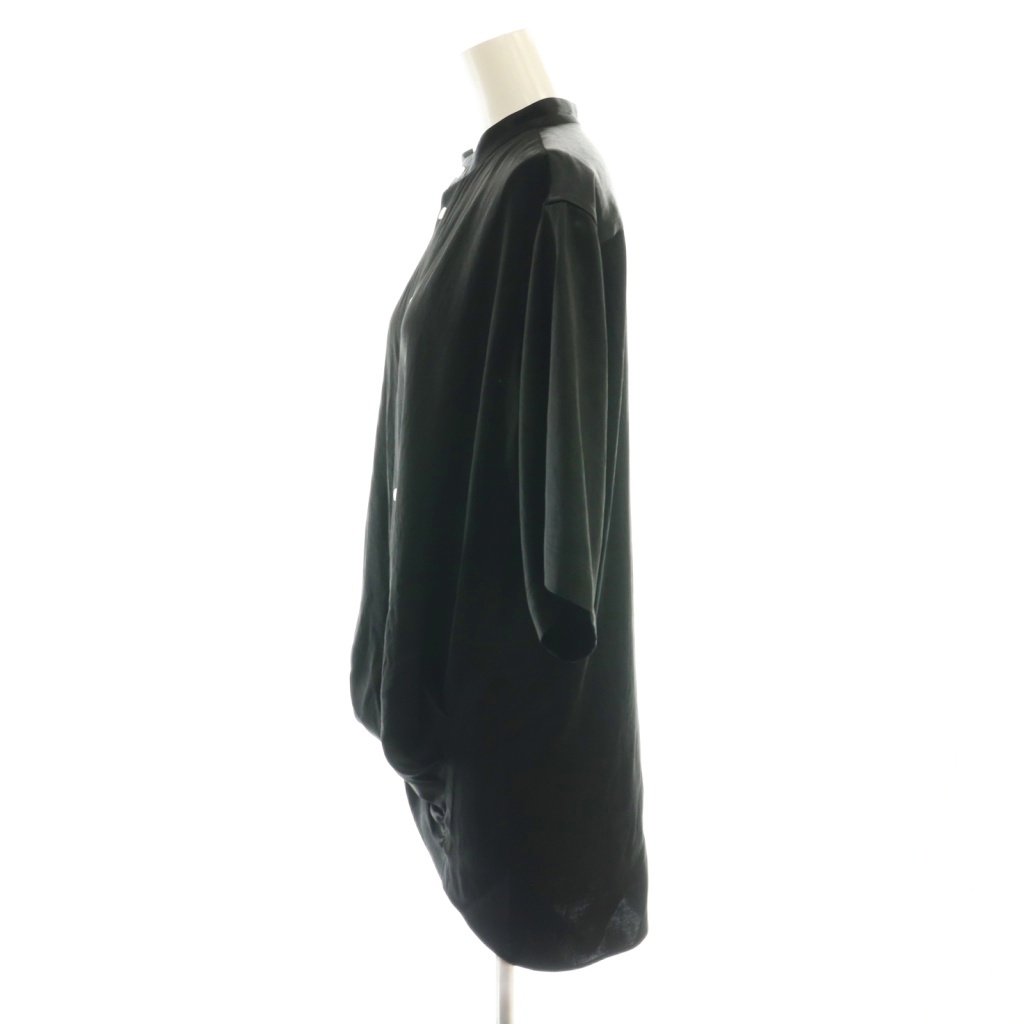 • チノ CINOH 25SS サテンドレープブラウス 五分袖 バンドカラー 38 M 黒 ブラック /AT ■OS レディース