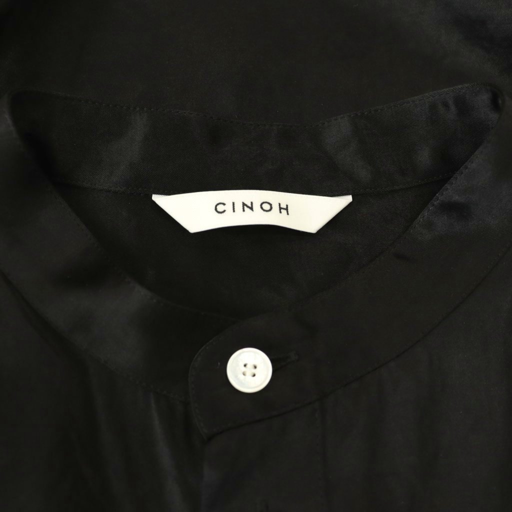 チノ CINOH 25SS サテンドレープブラウス 五分袖 バンドカラー 38 M 黒 ブラック /AT ■OS レディース