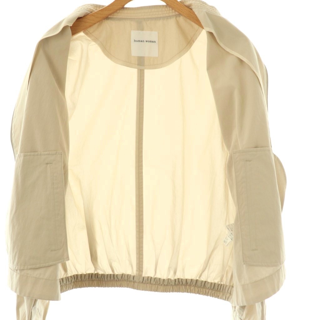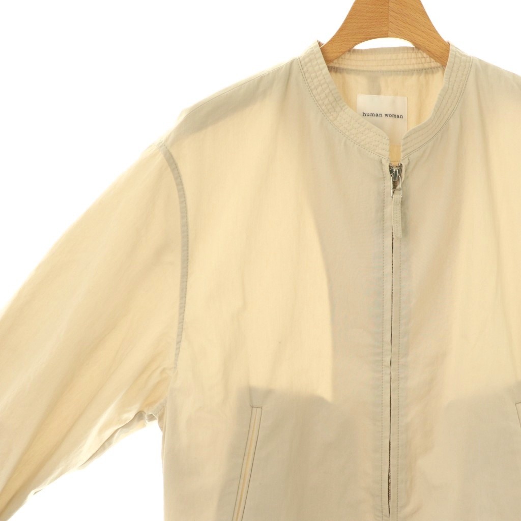 ヒューマンウーマン HUMAN WOMAN 24SS ノーカラーショートブルゾン ジャケット ジップアップ 薄手 M ベージュ /NR ■OS レディース