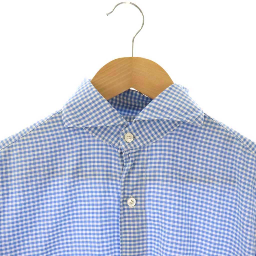 フィナモレ finamore ギンガムチェックシャツ 長袖 S ブルー /HK ■OS メンズ