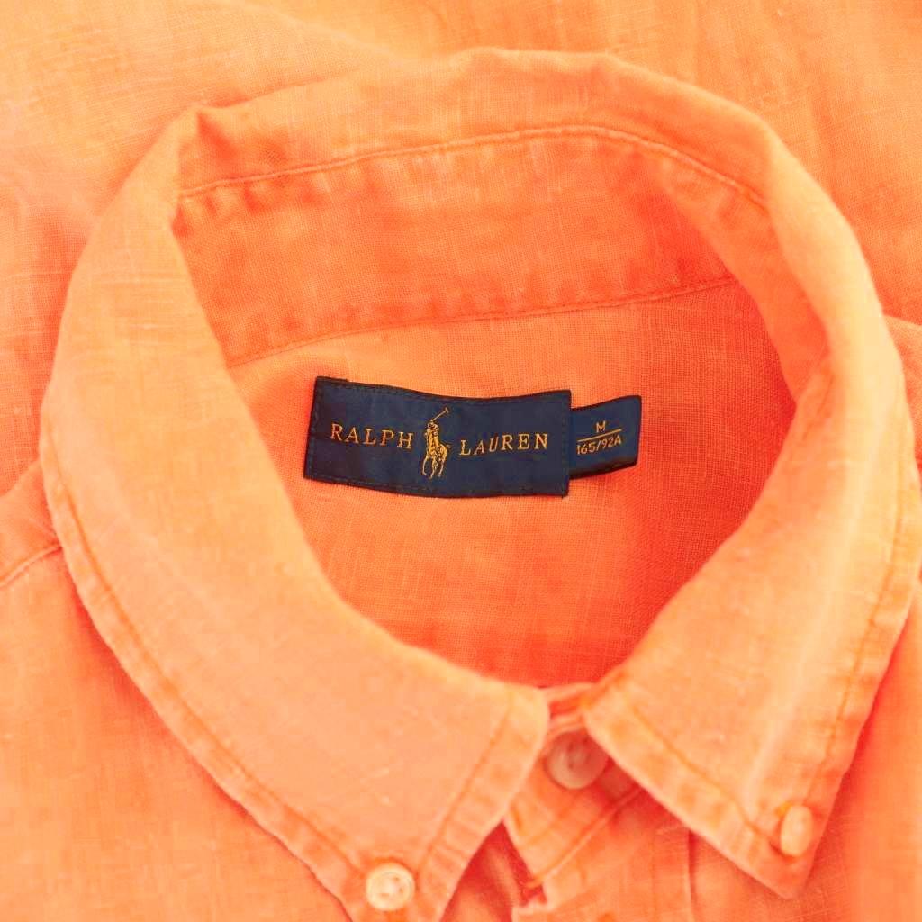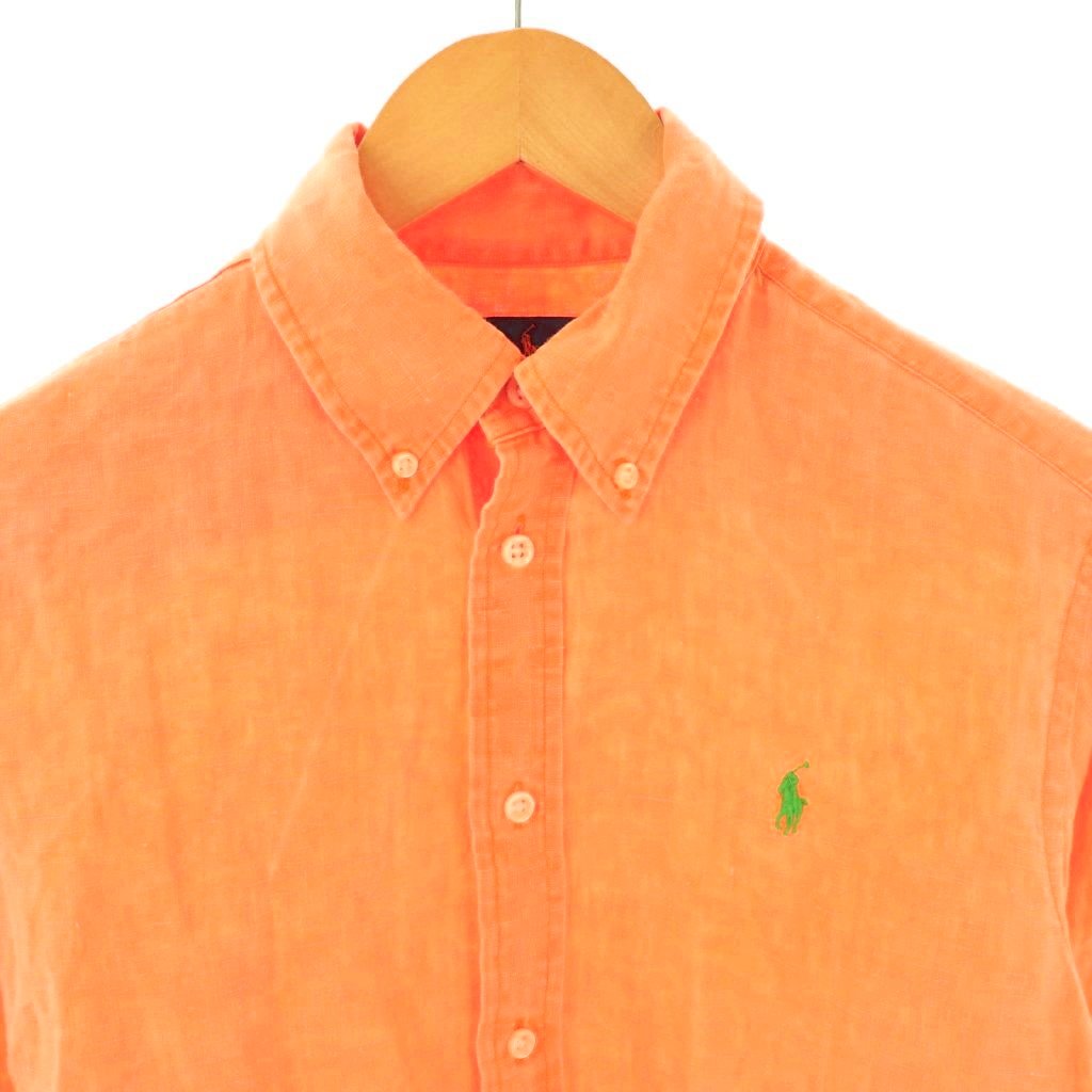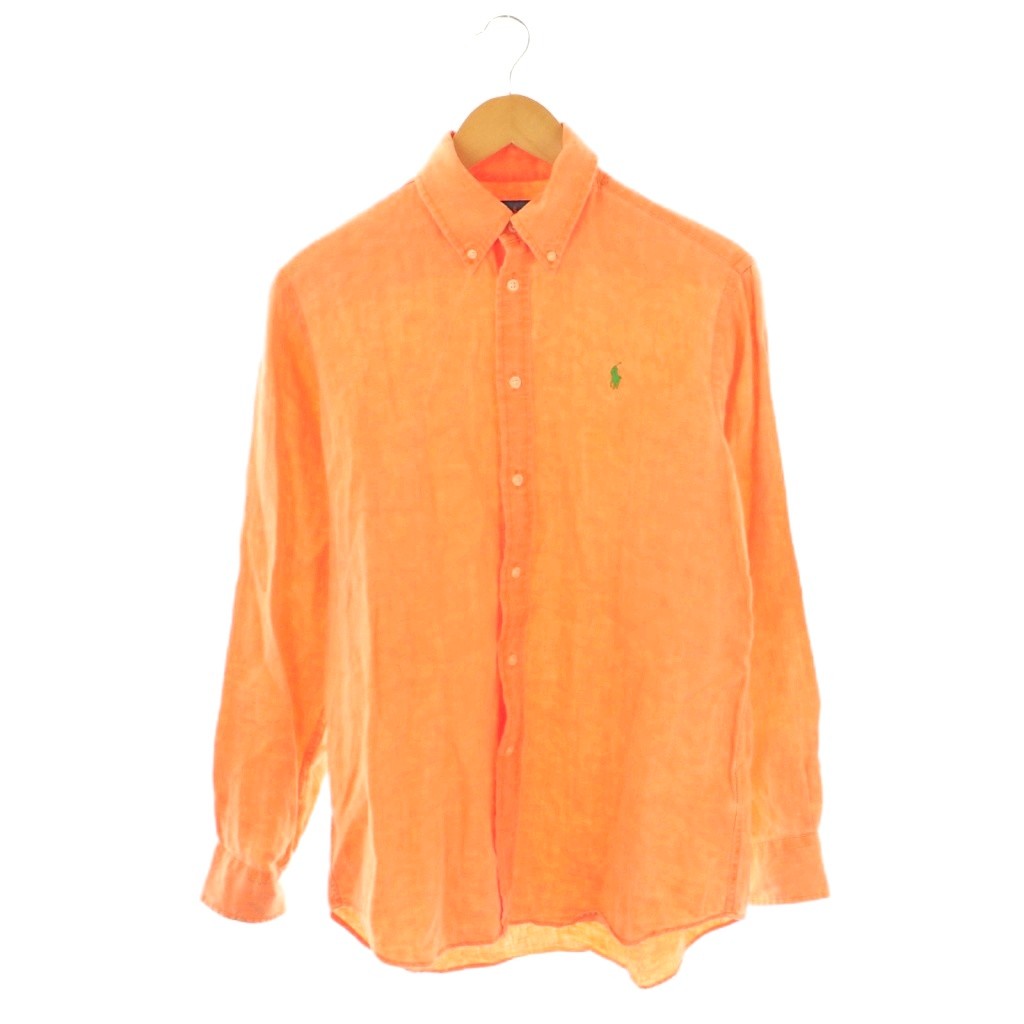 • ラルフローレン RALPH LAUREN リネン 長袖 ボタンダウンシャツ M オレンジ /HK ■OS メンズ