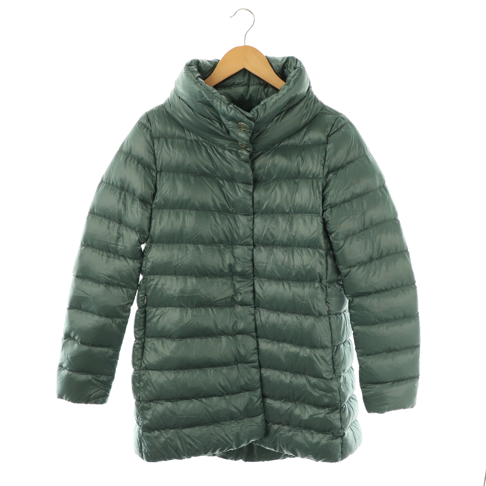 • ヘルノ HERNO PI0505DIC ICONICO ダウンジャケット アウター スナップボタン ナイロン 42 グリーン /NR ■OS レディース