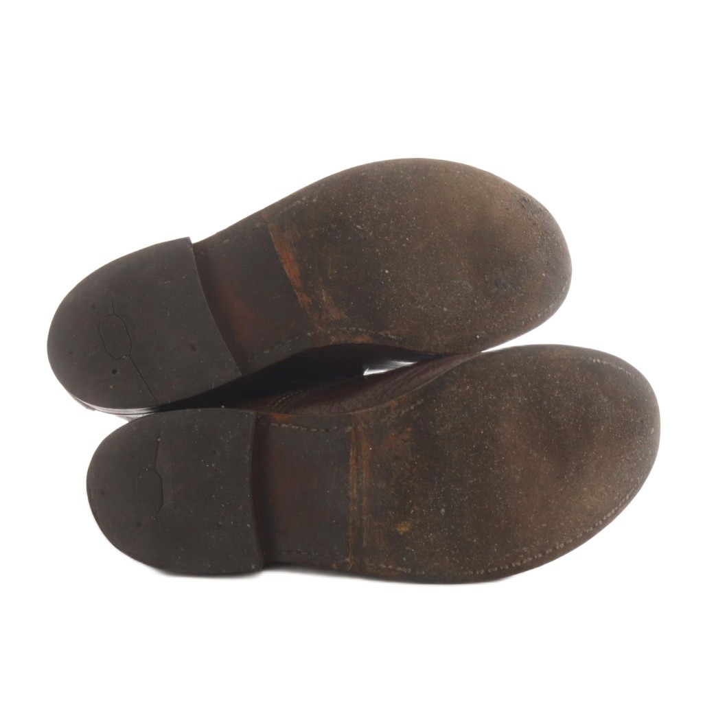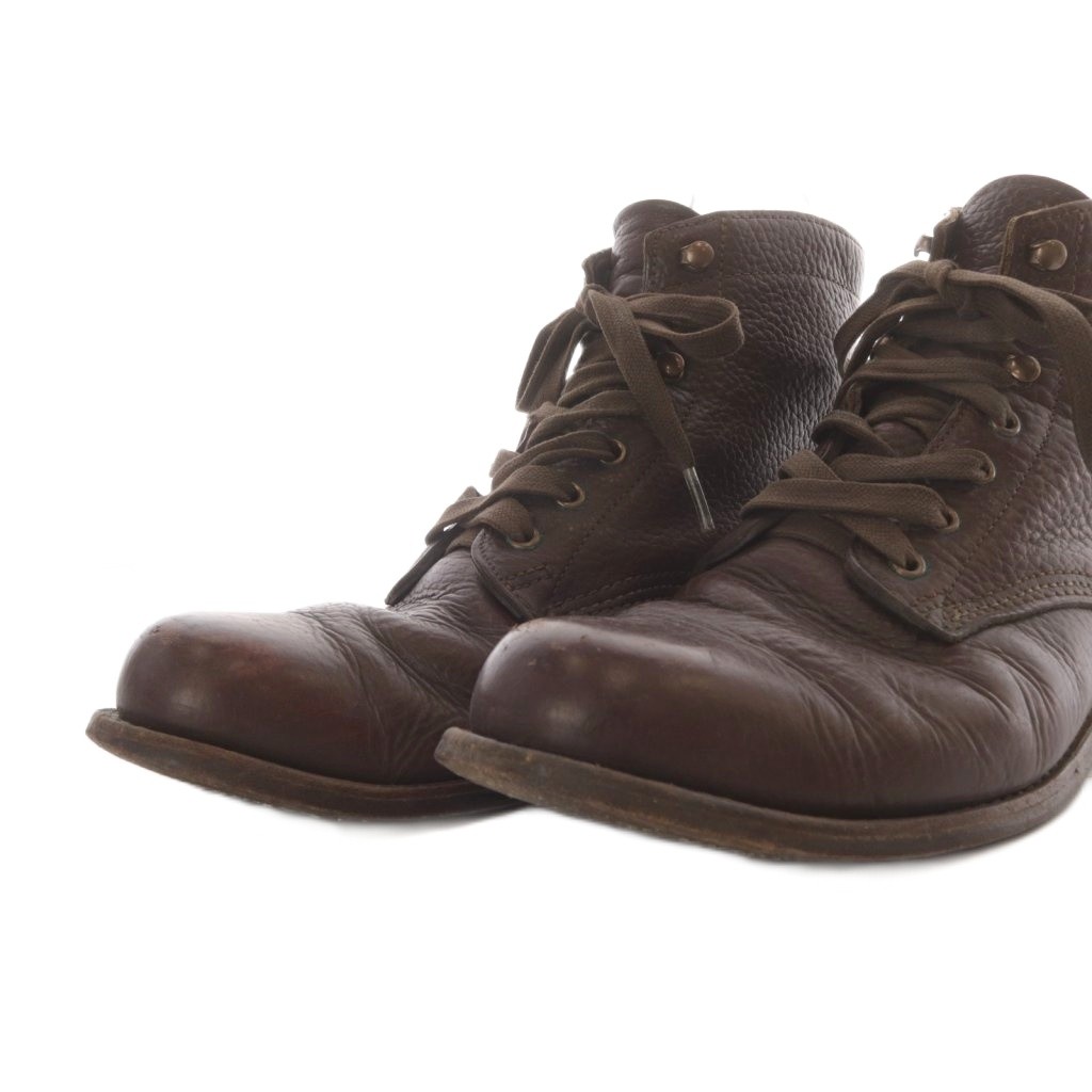 状態 表側に使用によるスレと汚れ、かかとのすり減り、紐穴部分に緑色のサビがございますが、その他に目立ったダメージはなく、問題なくご使用いただける商品です。