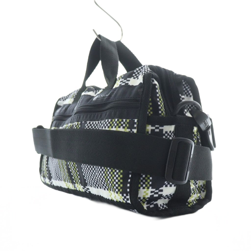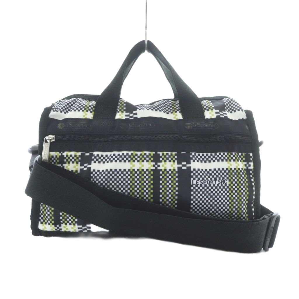 レスポートサック LesportSAC ショルダーバッグ 黒 ブラック 白 ホワイト 黄緑 チェック柄 ロゴプリント /RI ■OS レディース