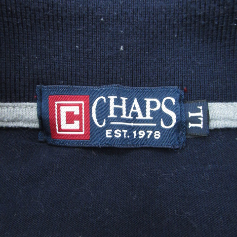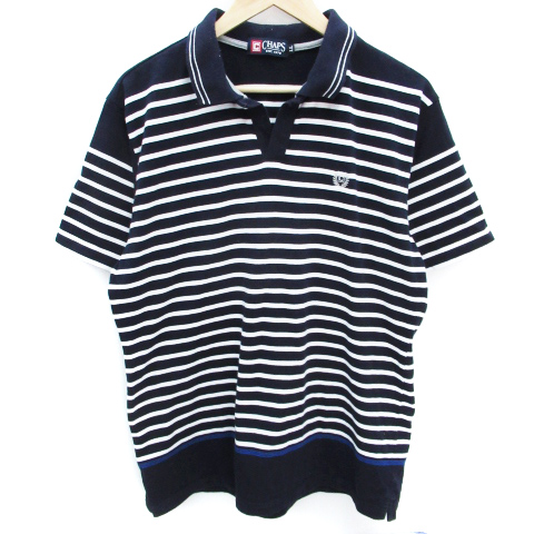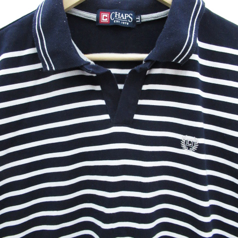• チャップス CHAPS シャツ カジュアル 半袖 スキッパーカラー 刺繍 ボーダー柄 大きいサイズ LL 紺 白 ネイビー ホワイト /FF44 メンズ