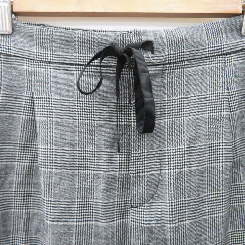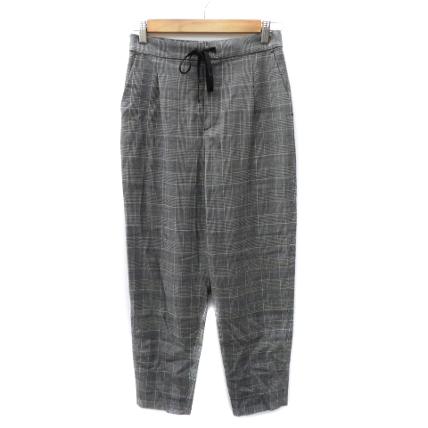 • ヒューマンウーマン HUMAN WOMAN テーパードパンツ イージーパンツ アンクル丈 グレンチェック柄 M 黒 ブラック オフホワイト /YK7 レディース