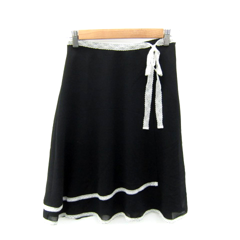 • エフデ ef-de フレアスカート ミモレ丈 無地 レース リボン 9 黒 ブラック /SY12 レディース