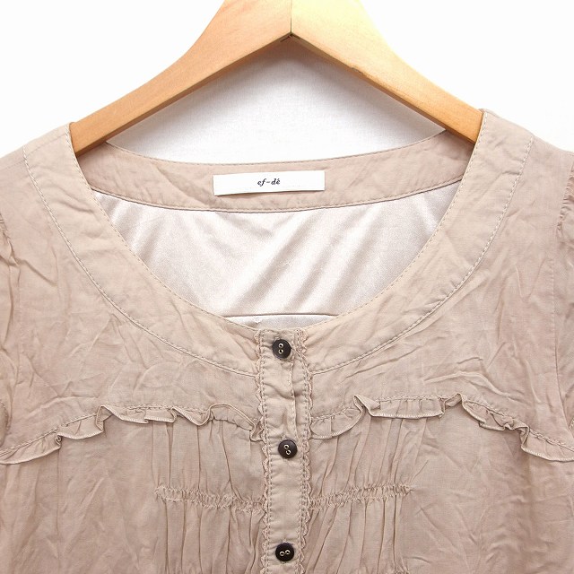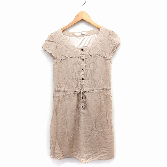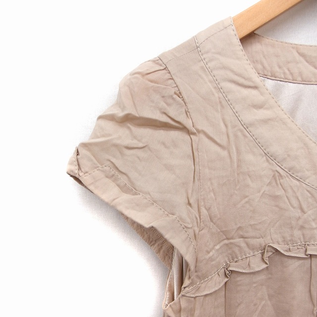 • エフデ ef-de ワンピース フリル ロング キャップスリーブ 丸首 リボン 9 ベージュ /FT10  レディース