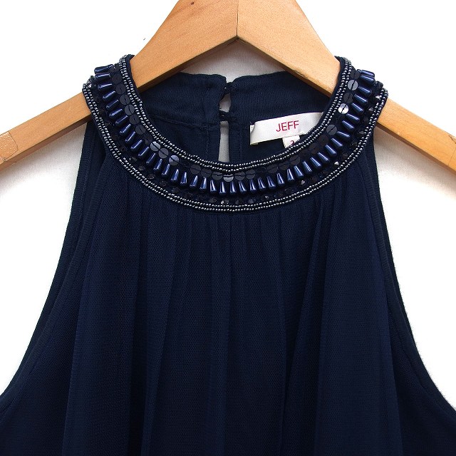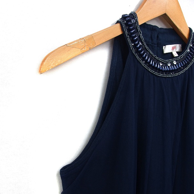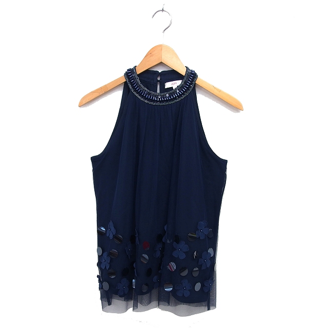 • JEFF フォーマルブラウス チュール ノースリーブ ビーズ装飾 モチーフ 2 紺 ネイビー /NT10 レディース
