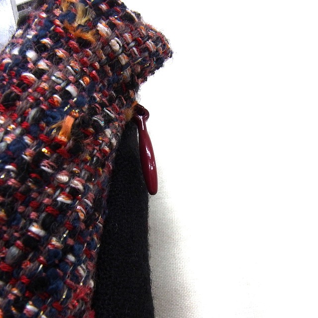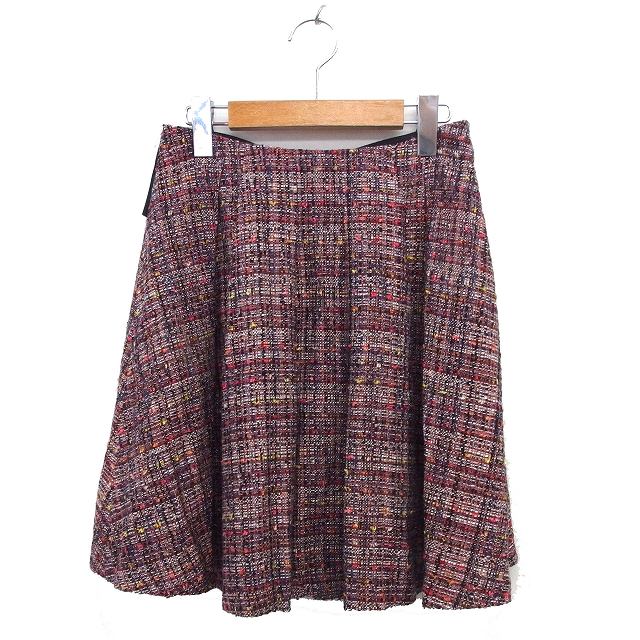 エフデ ef-de ツイード フレア スカート ひざ丈 リボン タック サイドジップ 9 赤 レッド /NT27 レディース