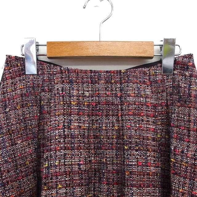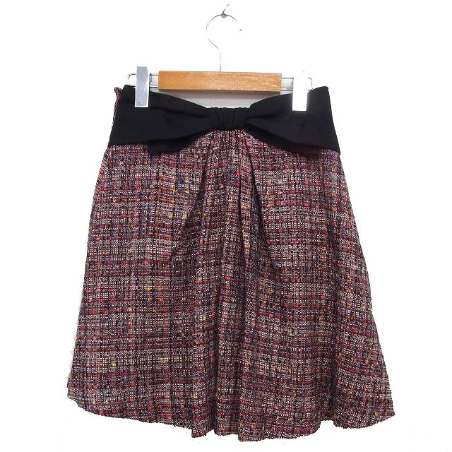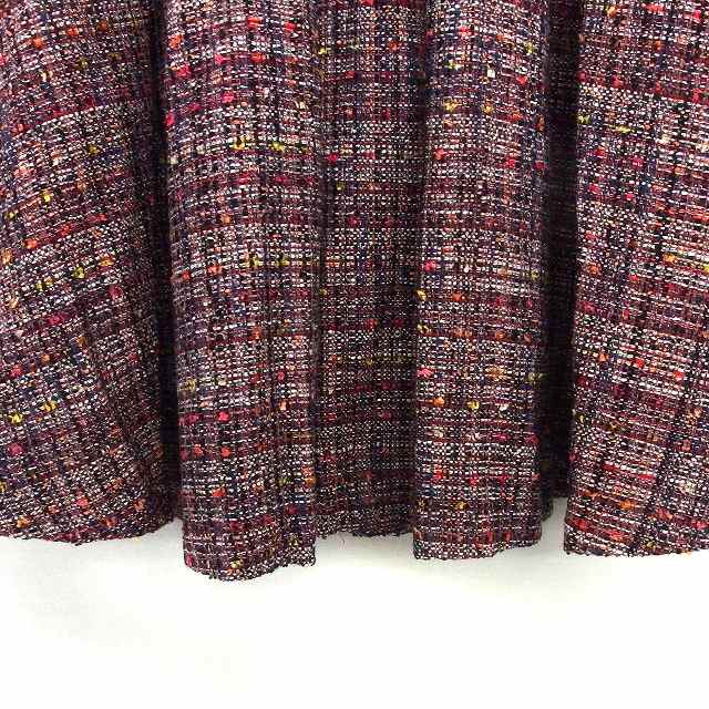 • エフデ ef-de ツイード フレア スカート ひざ丈 リボン タック サイドジップ 9 赤 レッド /NT27 レディース
