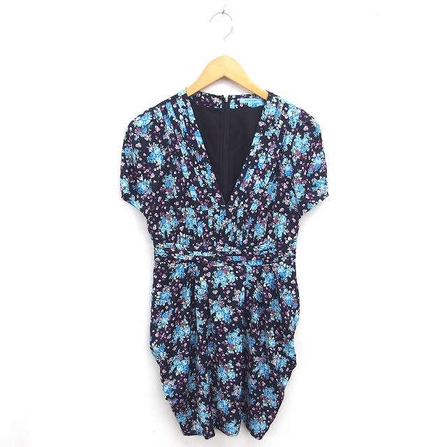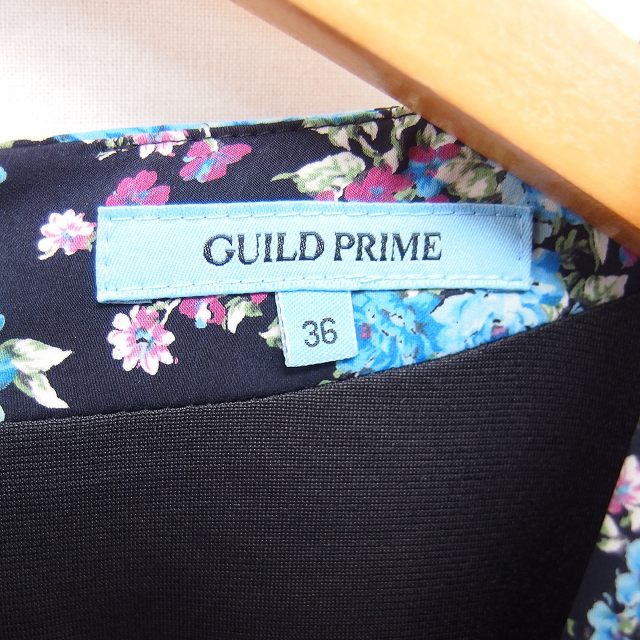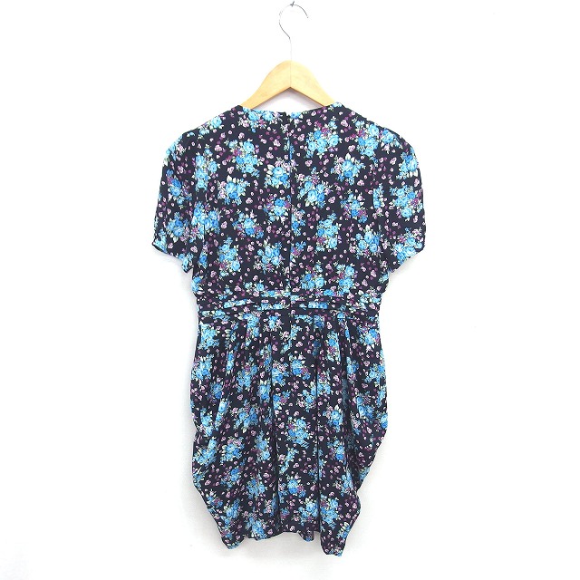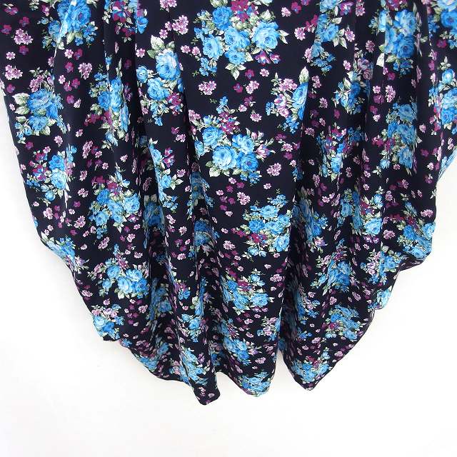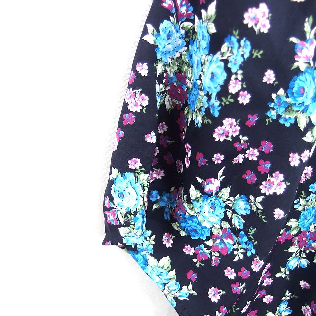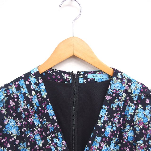 ギルドプライム GUILD PRIME ワンピース バルーン 花柄 ひざ丈 Vネック プルオーバー 半袖 36 ネイビー ライトブルー 紺 青 /TT レディース