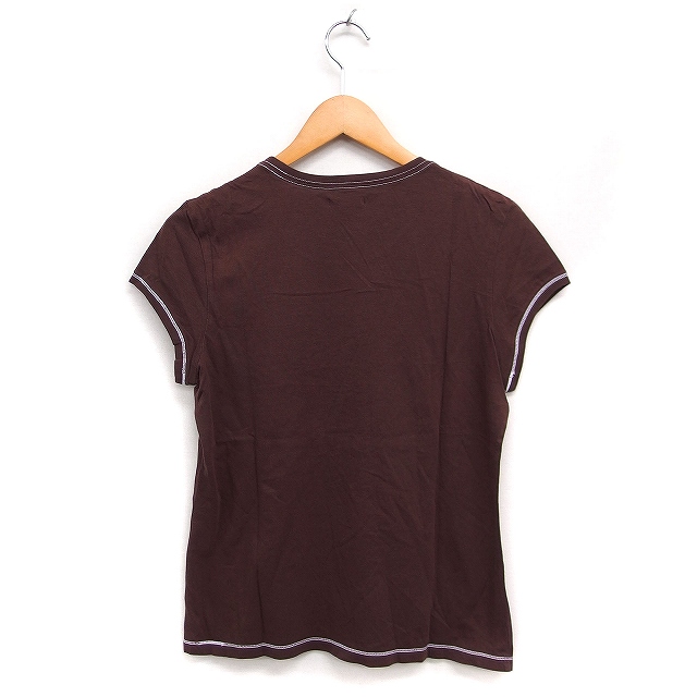 セオリー Theory クルーネック カットソー Tシャツ 半袖 配色ステッチ コットン 綿 4 ブラウン 茶 /FT29 レディース