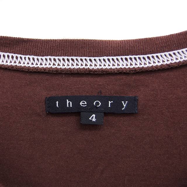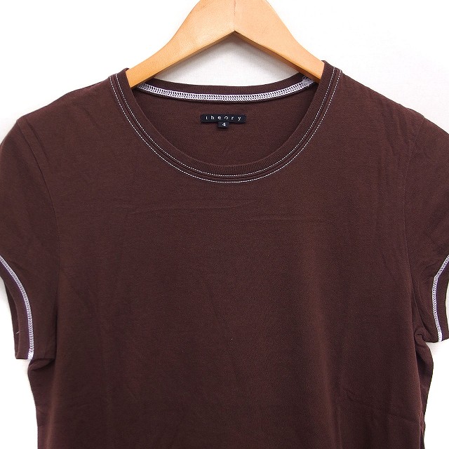 • セオリー Theory クルーネック カットソー Tシャツ 半袖 配色ステッチ コットン 綿 4 ブラウン 茶 /FT29 レディース
