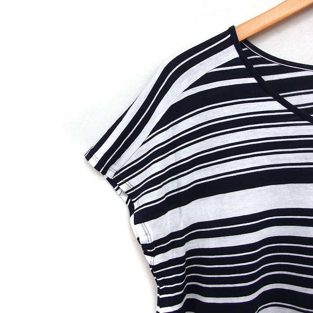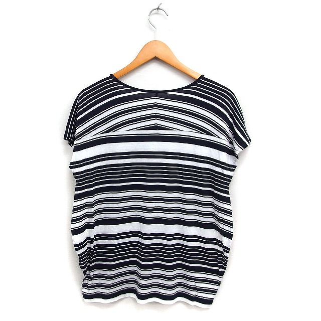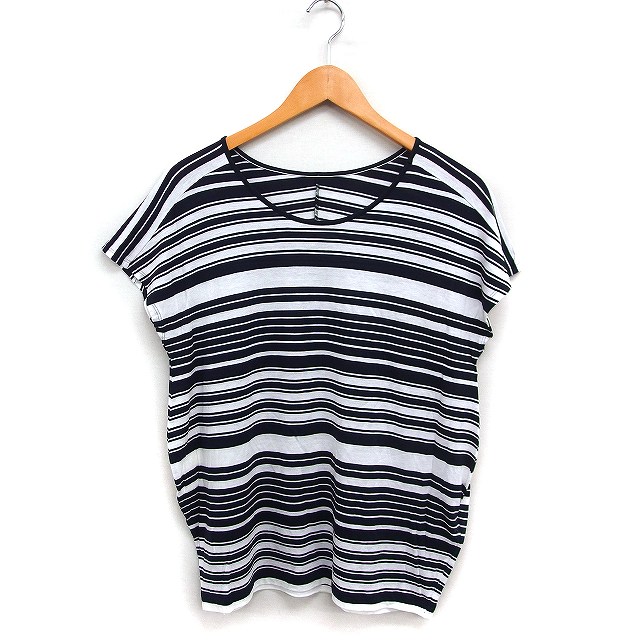 コムサデモード COMME CA DU MODE ボーダー カットソー Tシャツ フレンチスリーブ 丸首 9 ブラック 黒 /FT42 レディース