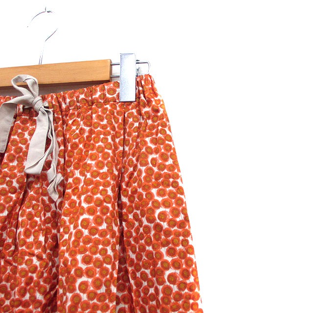 ヒューマンウーマン HUMAN WOMAN フレア スカート ロング コットン 花柄 M オレンジ 橙色 /KT24 レディース