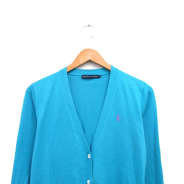 ラルフローレン RALPH LAUREN 国内正規品 カーディガン 長袖 Vネック コットン シンプル M ブルー 青 /KT34 レディース