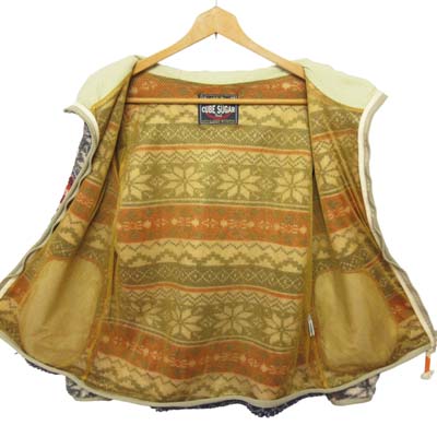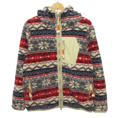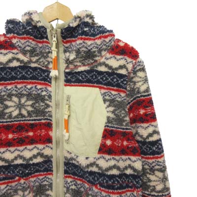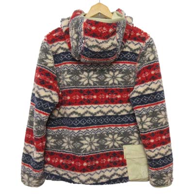 • キューブシュガー CUBE SUGAR ボアジャケット ジップパーカー 総柄 M 赤 紺 レディース