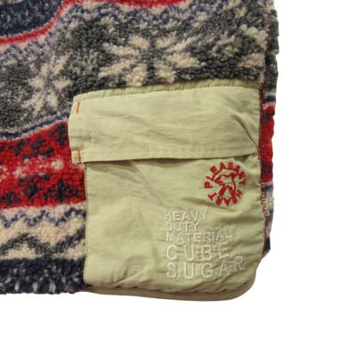 キューブシュガー CUBE SUGAR ボアジャケット ジップパーカー 総柄 M 赤 紺 レディース