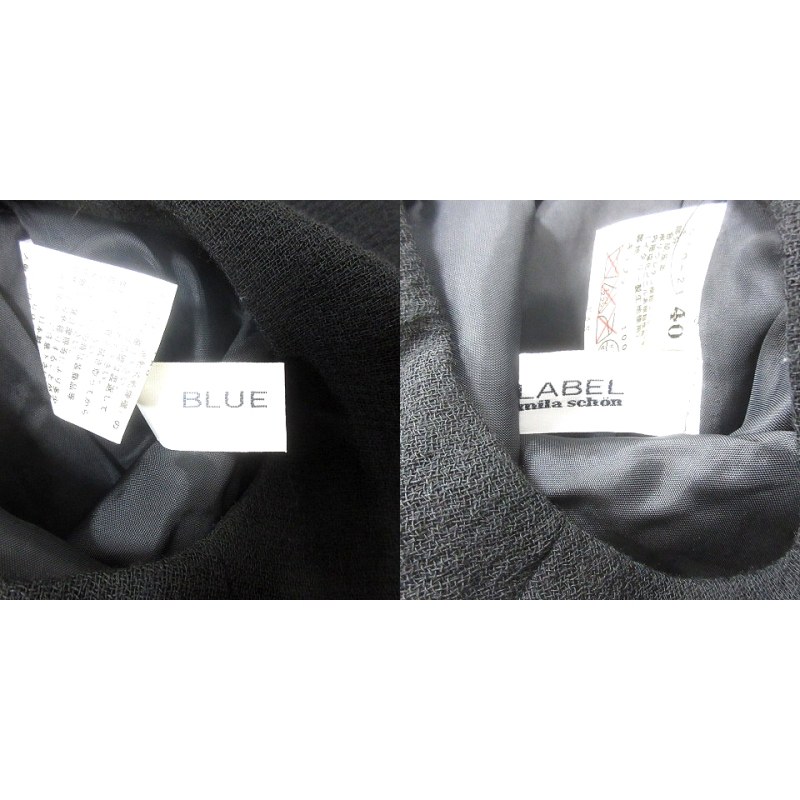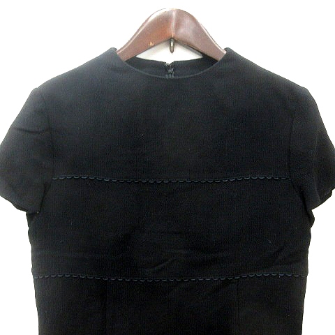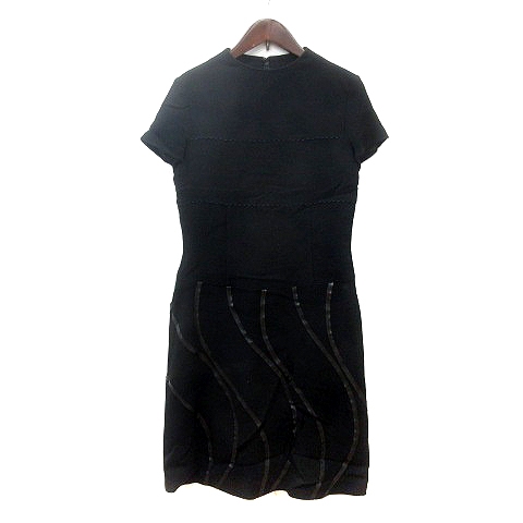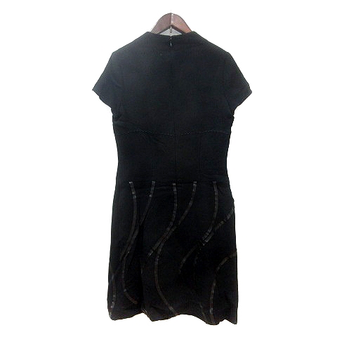 • ミラショーン mila schon BLUE LABEL ワンピース ひざ丈 総柄 半袖 ウール 40 L 黒 ブラック /MN レディース